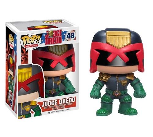 Just about a month ago, we reported on a Prototype Photo of a Judge Dredd Pop! Vinyl Figure. Now, Christina over the the Funko Funatic Forums has posted an official shot of the upcoming Judge Dredd Pop! Vinyl Figure. The pic shows the Funko standard in and out of packaging “Glam” shot.