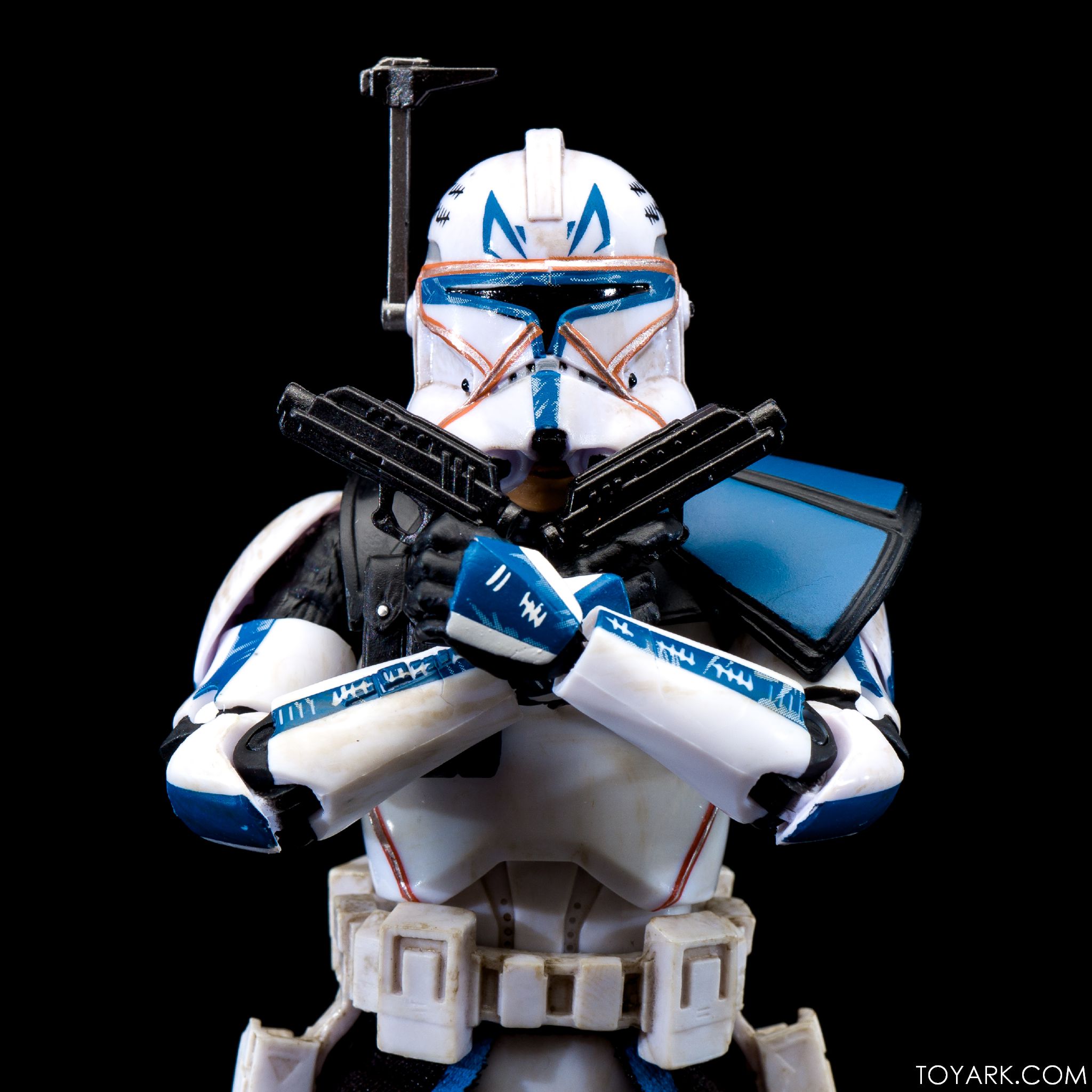 Captain Rex is in the building! The upper ranks of the clone army is filling out in Black Series with Captain Rex in his Phase 2 armor joining the ranks. This was a Hascon exclusive this past weekend, but he will be released later in standard packaging. He features a removable helmet, dual pistols and standard Clonetrooper rifle and blaster. The body has detailing and weathering to show combat wear, along with kill counts on his arms, legs and helmet. Unique parts include his shoulder pauldron, upper pouch and skirt. The face is sharply done in sculpt and paint and he’s rocking his famous platinum blonde hair. All in all it’s a really solid figure and the Hascon exclusive box is just icing on the cake. Read on to check out over 50 images of him in action!