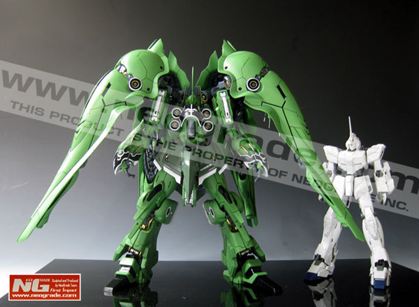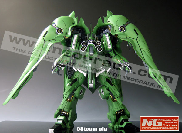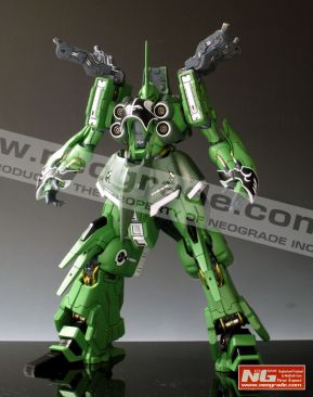 Trailing on the heels of the recent release of the Official 1/100 MG Sinanju Ver. Ka, Korean Company NEOGRADE has released a full 1/100 scale resin kit of the NZ-666 Kshatriya from the Universal Century era “Unicorn Gundam” series of novels. Piloted by Marida Cruz (aka Ple Twelve), it’s a massive mobile suit consisting of 4 mega particle beams in it’s chest, 2 beam sabers and 4 binders attached to its shoulders, each binder equipped with 6 “funnel” remote weapons and 2 mega particle beams, giving the Kshatriya immense destructive capabilities! This is the perfect item for Gundam Unicorn and Zeon fans!