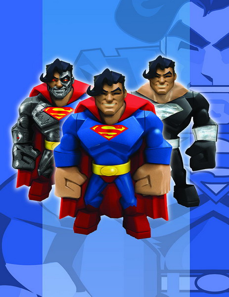 DC Direct has announced revealed a new set of their Uni-Formz figures. The figures are based on various Superman incarnations. The first is a classic Superman, the next is a Cyborg Superman and the last is a Kryptonian Life Suit Superman. Fans will recognize the last two as figures based on the Death and Return of Superman. The figures are scheduled to ship in September 2009.