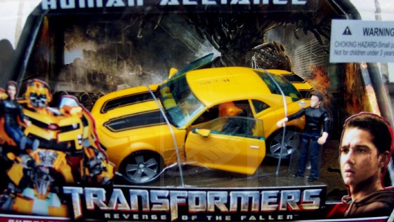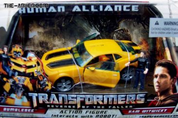 A new addition to the Transformers:Revenge of the Fallen toyline are the Human Alliance sets of figures! Seen here is Bumblebee w/Spike Witwicky! Spike is an articulated mini-figure that can actually sit inside Bumblebee! Diaclone anyone? This all new mold for Bumblebee features a missle launcher on the right arm, flip out cannon on the left, and a flip down battle mask! Additional human ally figures will be sold seperately, so look forward to more humans from the movie to appear in the line!