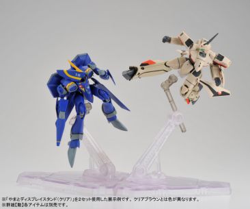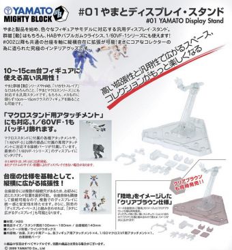 Set for release in april are Yamato’s Mighty Block display stands & display bases! Both come in clear, & clear brown. Stands retail for 1,480 yen while the bases will retail for 1,280 yen. These stands and bases can be stacked, and connected in multiple ways! These are compatible with popular Yamato items, such as their GNU-Do figures, 1/60 Macross toys, & MOE Block toys! The stands and bases come with all the neccessary adaptors for the figures, and connection pieces.