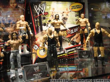 Mattel’s SDCC booth of course included shelves of WWE toys on display, and Toyark wasn’t going to miss out on the action! Check out the TRU exclusive Legends 2-packs, Entrance Greats, Electrovision Championship Belt and more!