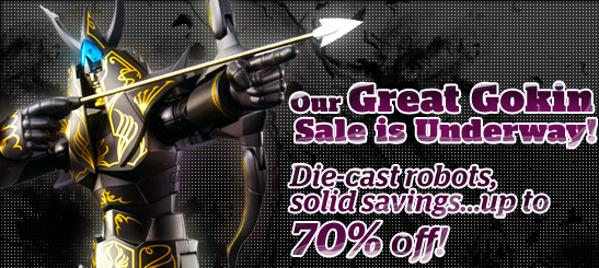 If you love diecast robots, site sponsor HobbyLink Japan has the sale for you! Going on right now is the HLJ Great Gokin Sale, where you can save up to 70% off on popular diecast robot toys! Some of select gokin items on sale include arguably the best DX releases so far in Tamashii‘s Macross Frontier line: