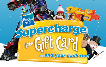 As you may recall, I let you all know a while back about a Hasbro promotion called “Supercharge Your Gift Card and Cash Too” that began on Christmas Day and runs until 1/31/11. With a little more than a week left until the end of January, I just wanted to make sure you and your respective communities don’t miss out on this great opportunity!