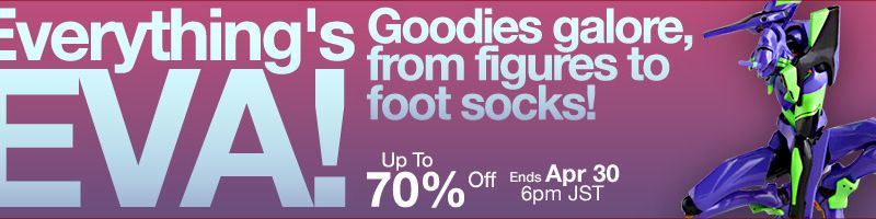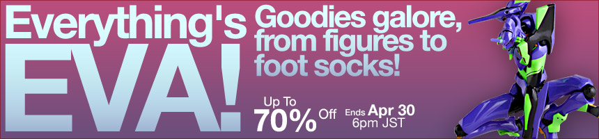 If you’re a big fan of the popular anime by Gainax, Neon Genesis Evangelion, well head on over to site sponsor HobbyLink Japan for their Everything’s EVA super sale! Save up to 70% off on items such as: