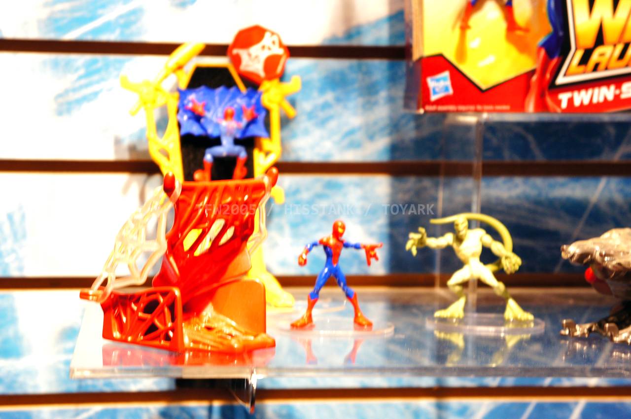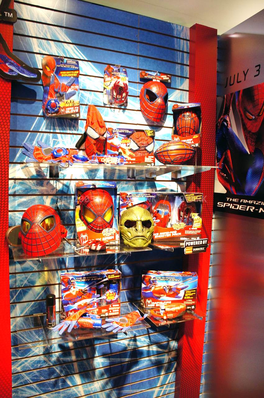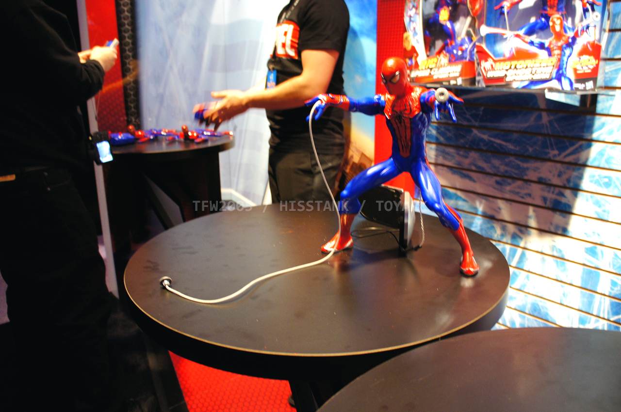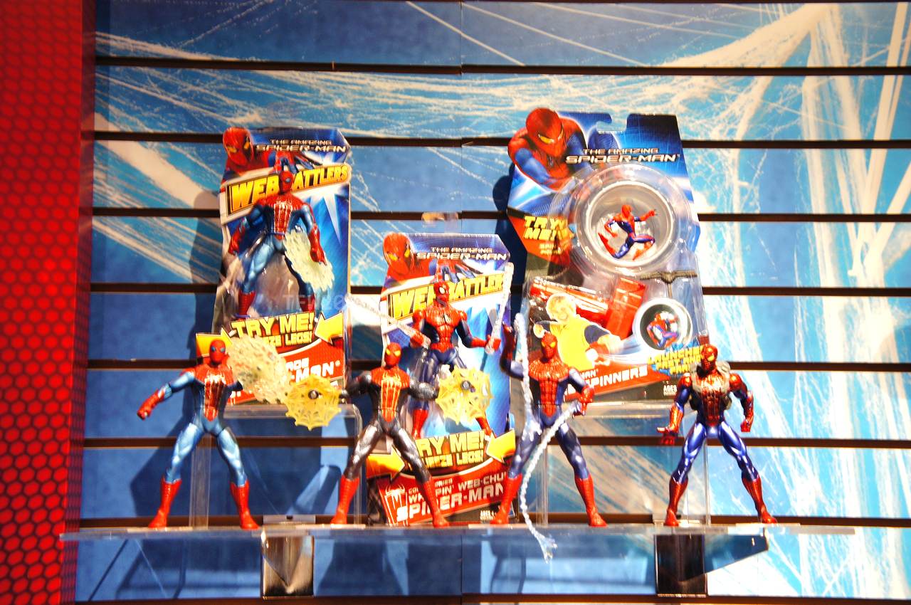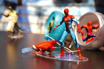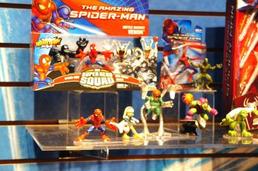 Check out images from the Hasbro show room of upcoming Spiderman movie figures. Nearly the entire line is aimed at kids, so for collectors, perhaps we’ll get something more suited to us shown at SDCC. The super articulated Spiderman shown last year at SDCC 2011, is shown here, in addition to a bunch of role playing items and figures with gimmicks. Nearly all of the single carded figures feature t-crotches in lieu of articulated hips. Will this line still be a hit with kids?
