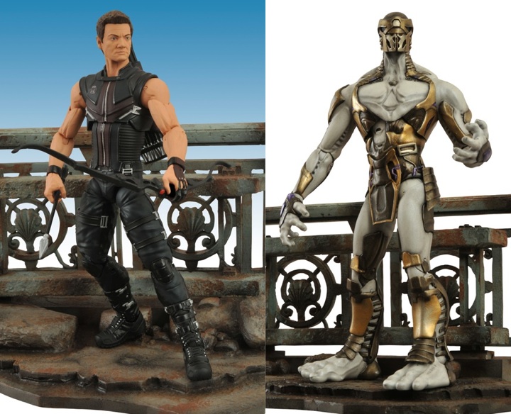 As part of Marvel Minimates Series 45, a 2-inch minifigure of Loki’s Army Footsoldier will come out in early May as part of a two-pack with Maria Hill. And be on the lookout for a rare variant set, which will pair the Footsoldier with his even more intimidating General! Then, in July, look for the 7-inch Marvel Select figure of the Footsoldier to hit stores, along with a bridge battle display base that connects to Hawkeye’s display base, forming a larger battle scene! These Loki’s Army Minimates and Marvel Selects are only available in comic shops and specialty stores, so visit comicshoplocator.com to find the nearest location, or go to your favorite online retailer!