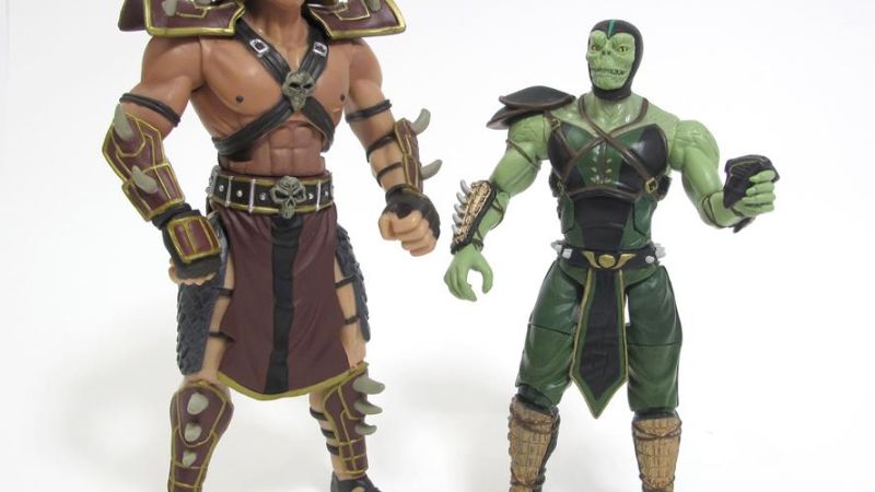 Jazwares has posted a couple of new Mortal Kombat Action Figure photos on their Facebook Page. They have posted a shot of their upcoming 6″ Reptile and their Deluxe Shao Kahn, who stands about 8″ tall. Reptile features a removable mask, while Shao Kahn does not.