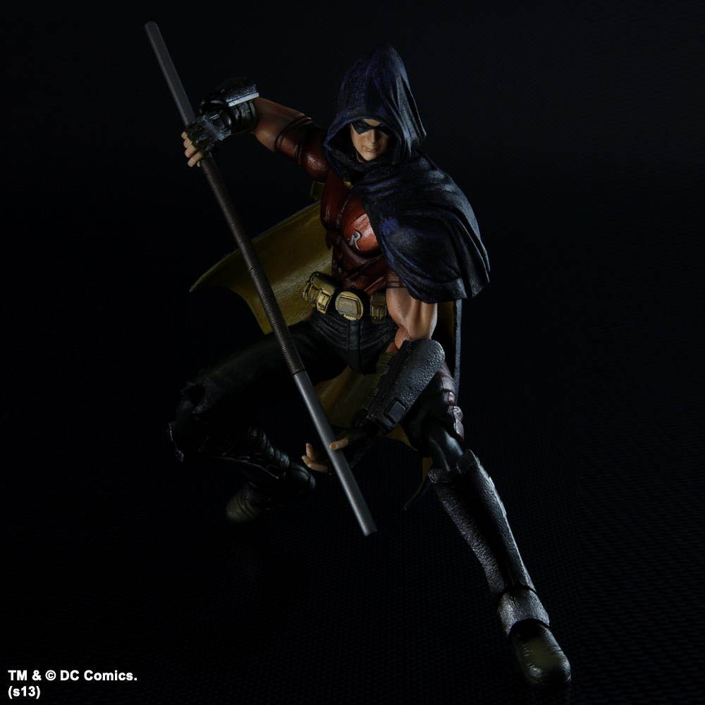 Square Enix has released new images for two upcoming Batman: Arkham City figures. Due out in January is the Play Arts Kai Arkham City Batman – Dark Knight Rises Skin. Due out in November is their Play Arts Kai Arkham City Robin.