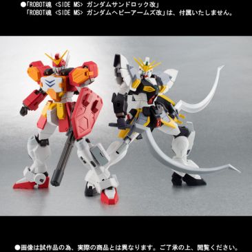 Recently we showed you official images of Robot Damashii SIDE MS Gundam Heavyarms but you are probably thinking…”wait..somethings missing…”. Yes Tamashii pulled a Robot Damashii Leo on us, as the parts one thought ought to come with Heavyarms are instead going to be sold in an option parts set. This set also comes with parts for the Robot Damashii SIDE MS Gundam Sandrock. If you want to recreate the duel between Heavyarms(piloted by Heero), and Tallgeese, you need this set. This set comes via the Tamashii Webshop, no word at the moment if Bluefin Tamashii Nations USA will bring this over. Pre-orders go live on March 4th, with a scheduled release date of July 2013. Cost is 2,310 yen. Parts included are the following:
