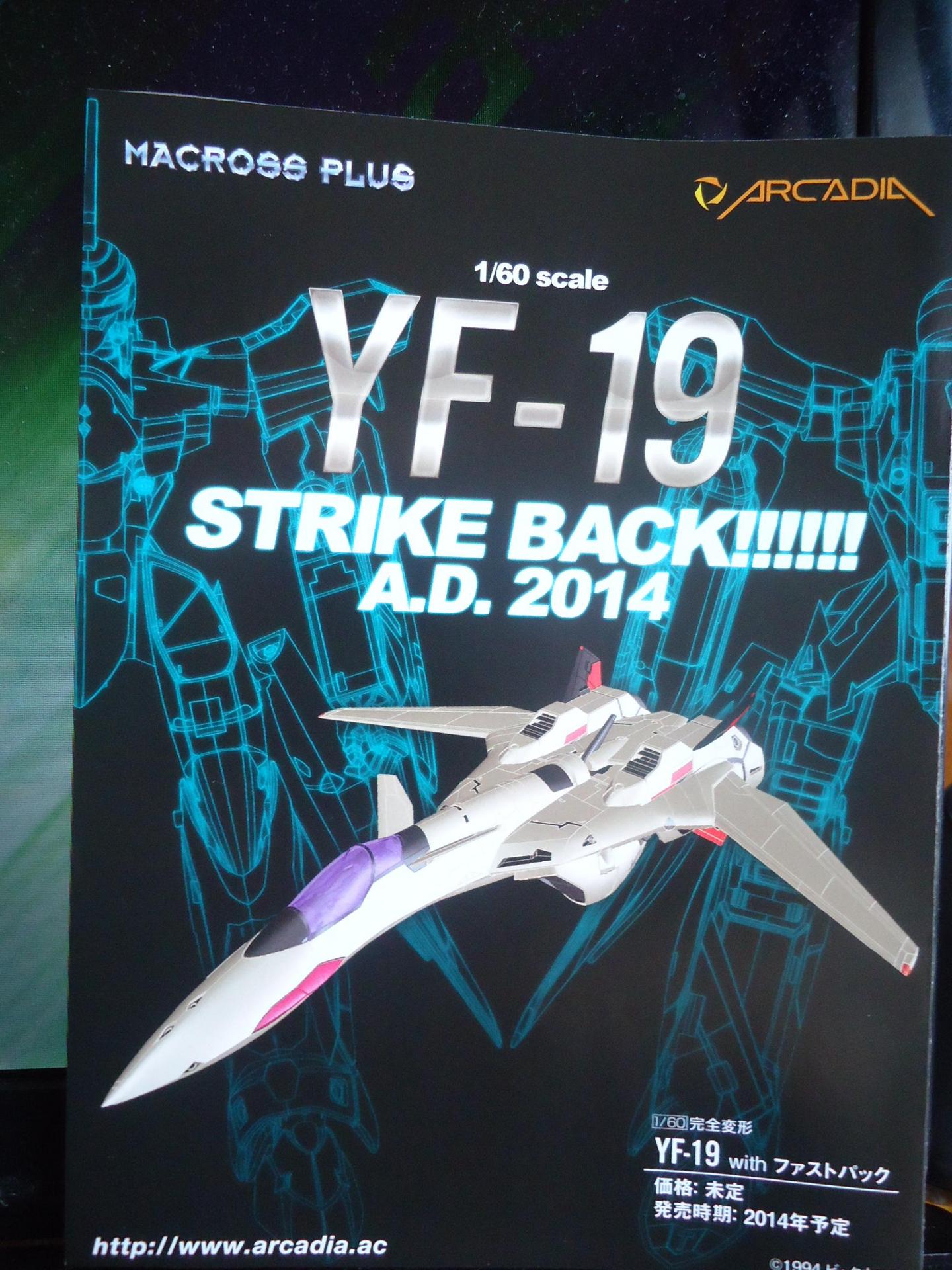 Renato of MacrossWorld has posted a photo of a teaser included with the recently released Macross Plus Blu-ray set. Coming in 2014 by Arcadia is an all new 1/60 YF-19 with Fast Packs! Arcadia is no stranger to Macross Plus, let alone Macross in general nor the YF-19. With Yamato ceasing operations late last year and re-emerging as Arcadia, this new YF-19 in a way has become like a Phoenix. The 1/72 YF-19 was the 1st Macross toy released by Yamato Toys over a decade ago. In the mid-2000’s they released a 1/60 YF-19 but by the time Yamato released their 1/60 Macross 7 VF-19’s the 1/60 YF-19 was definitely showing its age.