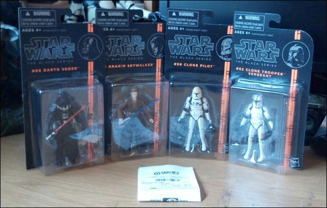 Looks like the Star Wars Black Series figures have begun to hit retail. A look at the Star Wars Black Series Listings on Ebay confirms that people are getting their hands on the figures now. Also, over at the Jedi Temple Archives, they have photographic proof with a receipt.