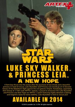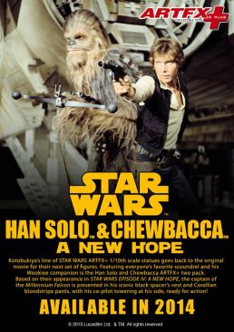 In two separate print ads, Kotobukiya has announced four new Star Wars ARTFX+ Statues coming in 2014. These statues will all be based on Star Wars: Episode IV – A New Hope. Included will be: