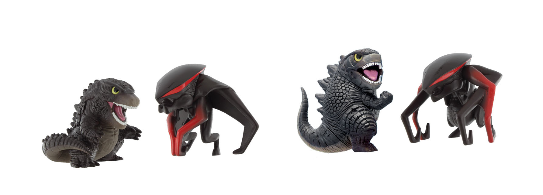 Godzilla takes on an anime look with these highly collectible chibi-style figures! Two different 2-Packs available, each includes one (1) Godzilla in a different pose and one (1) Muto.