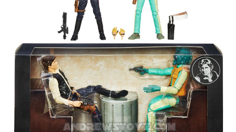 The first photos of the rumored Star Wars Black Series Cantina Showdown Set have shown up online. Andrew’s Toyz has posted the photos. They show the most infamous scene, changed by George Lucas, that has caused so much hate among fans of the original trilogy. You’ll get 6″ versions of Han Solo and Greedo in a showdown at the Mos Eisley Cantina. You decide who shot first! No price or release date is listed.