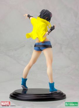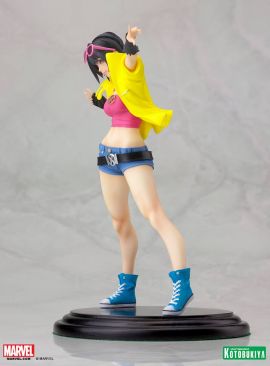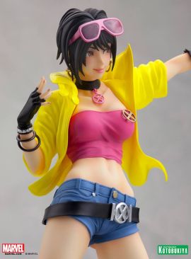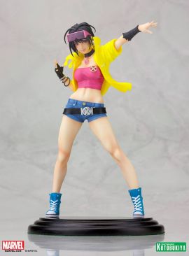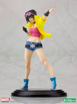 An awesome product of the late ‘80s, Jubilee was a spunky young girl with a loud sense of style, and all of that resonated with the fans and will again with this hot new statue. Jubilee stands a rocking pose, legs apart for balance and leaning slightly as she raises an arm into the air in preparation for unleashing a fiery display of plasmoids! The young mutant wears a hot update on her classic costume complete with blue high tops, jean short shorts with X logo belt, pink tube top, bright yellow jacket, and shredded black gloves. Jubilee accessorizes that ensemble with an X pin on her chest, choker, and pink sunglasses perched on her head. All of those details, as well as the heroine’s beautiful Bishoujo-styled face, are intricately sculpted and painted and look great on her!