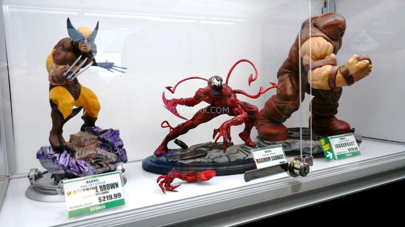 Here’s the Marvel Statues display from Kotobukiya. At San Diego Comic-Con they revealed a few new statues as well as art for upcoming Bishoujo statues. Check out the new Rogue Bishoujo prototype, a Maximum Carnage statue as well as the Marvel Now Avengers Statue display.