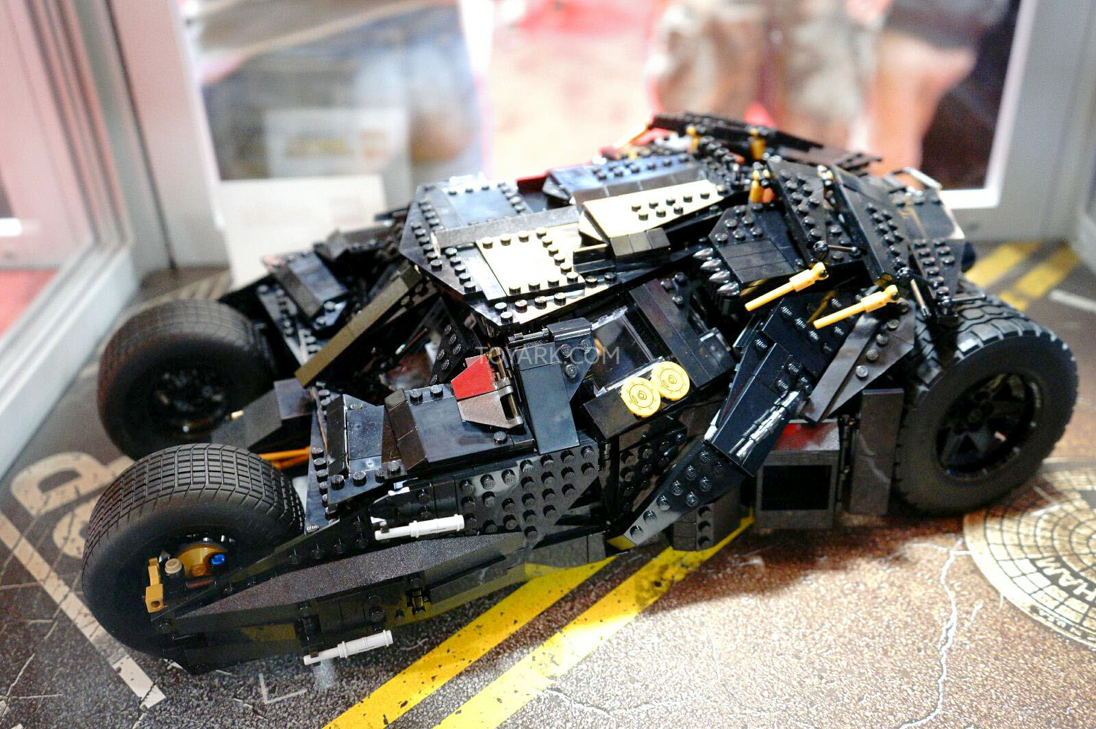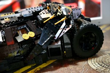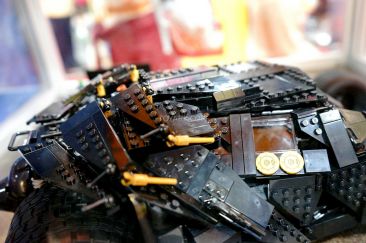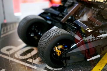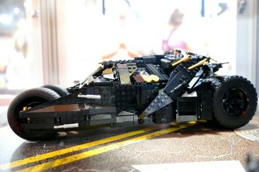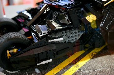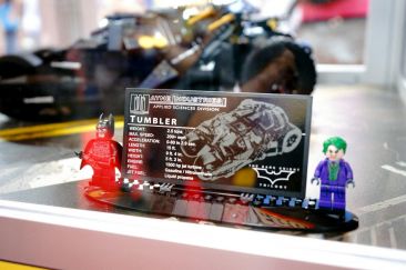 Measuring 15 inches tall and 9 inches wide, the LEGO Tumbler has an armored exterior, adjustable wings, a detailed interior with a console screen that reads “INTIMIDATE” and oversized rubber-tread tires. It also comes with a fact sheet about the vehicle from the movies. The LEGO Tumbler toy 1,869 pieces, at a cost of $199 goes on sale at LEGO Stores and shop.LEGO.com in September.