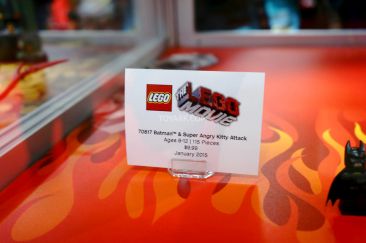 Live from the SDCC 2014 show room floor new images are coming in of the SDCC 2014 LEGO Booth. Today LEGO has turned on the lights for upcoming LEGO sets the Dark Night Tumbler and LEGO Movie Batman and Super Angry Kitty Attack 70817.