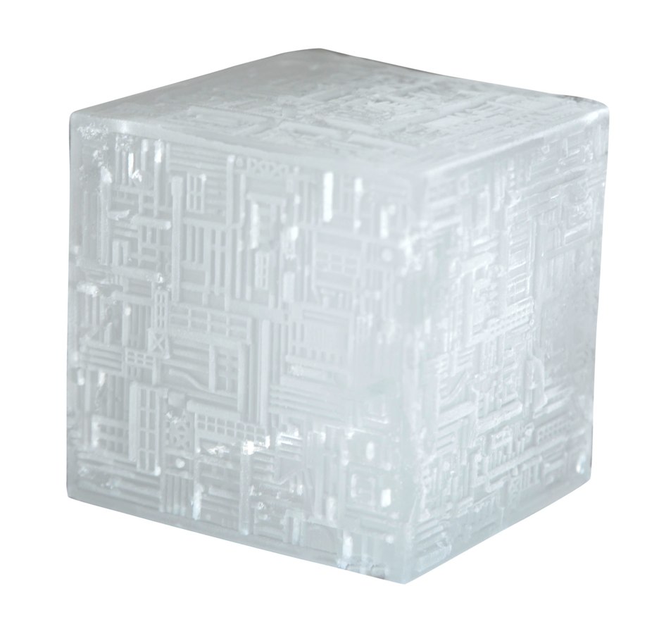 This silicone rubber mold will allow hungry Star Trek fans to cast up gelatin and chocolate in the shape of a 1.5″ Borg cube, thereby turning one of the Federation’s greatest threats into a bite-size morsel of deliciousness. Or make a Borg ice cube, and keep your beverage of choice as cold as the depths of space! Refreshment is futile! Comes packaged in a full-color window box.
