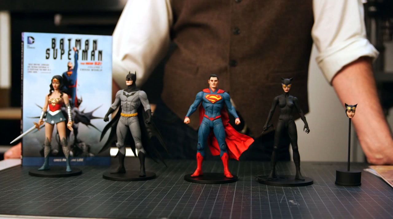 In a new DC All Access, DC Entertainment’s Vice President of Creative Services Kevin Kiniry gives fans the first look at some upcoming figures. DC Collectibles will be releasing a series of figures from the Batman/Superman comic book. These are similar to their Greg Capullo Designer Series Figures, but these are designed by Jae Lee. Included are:
