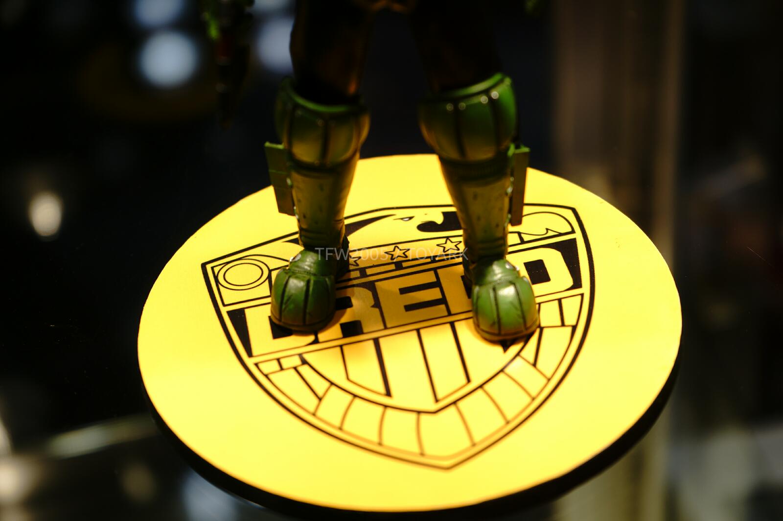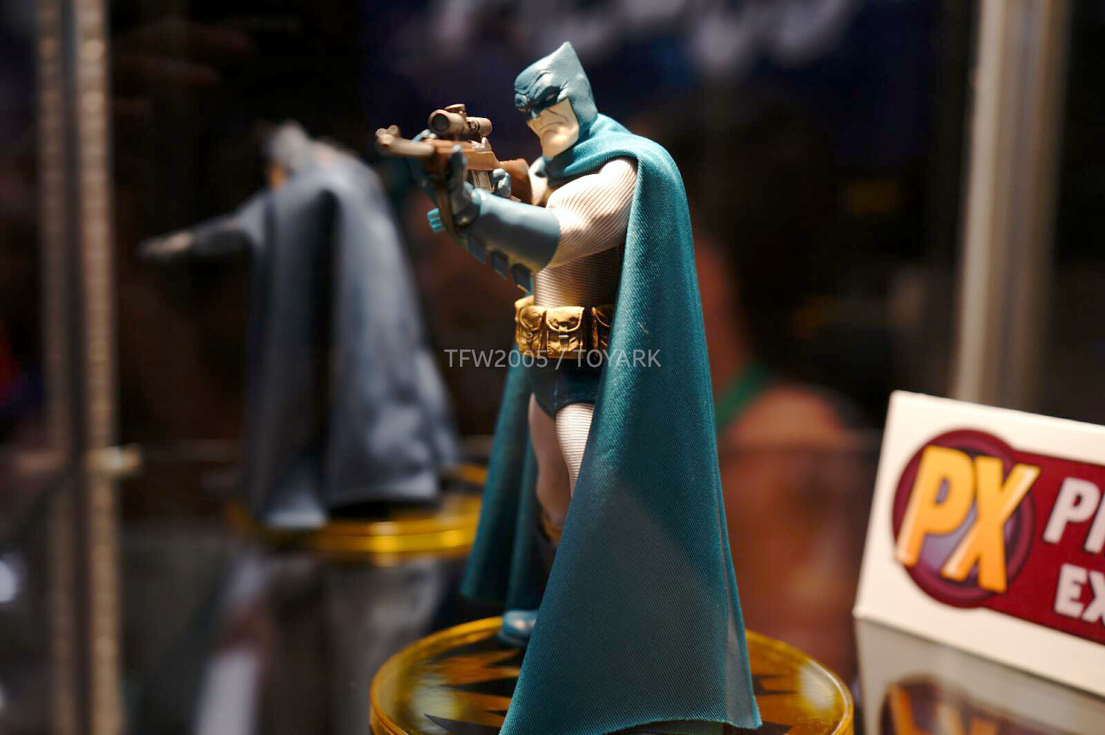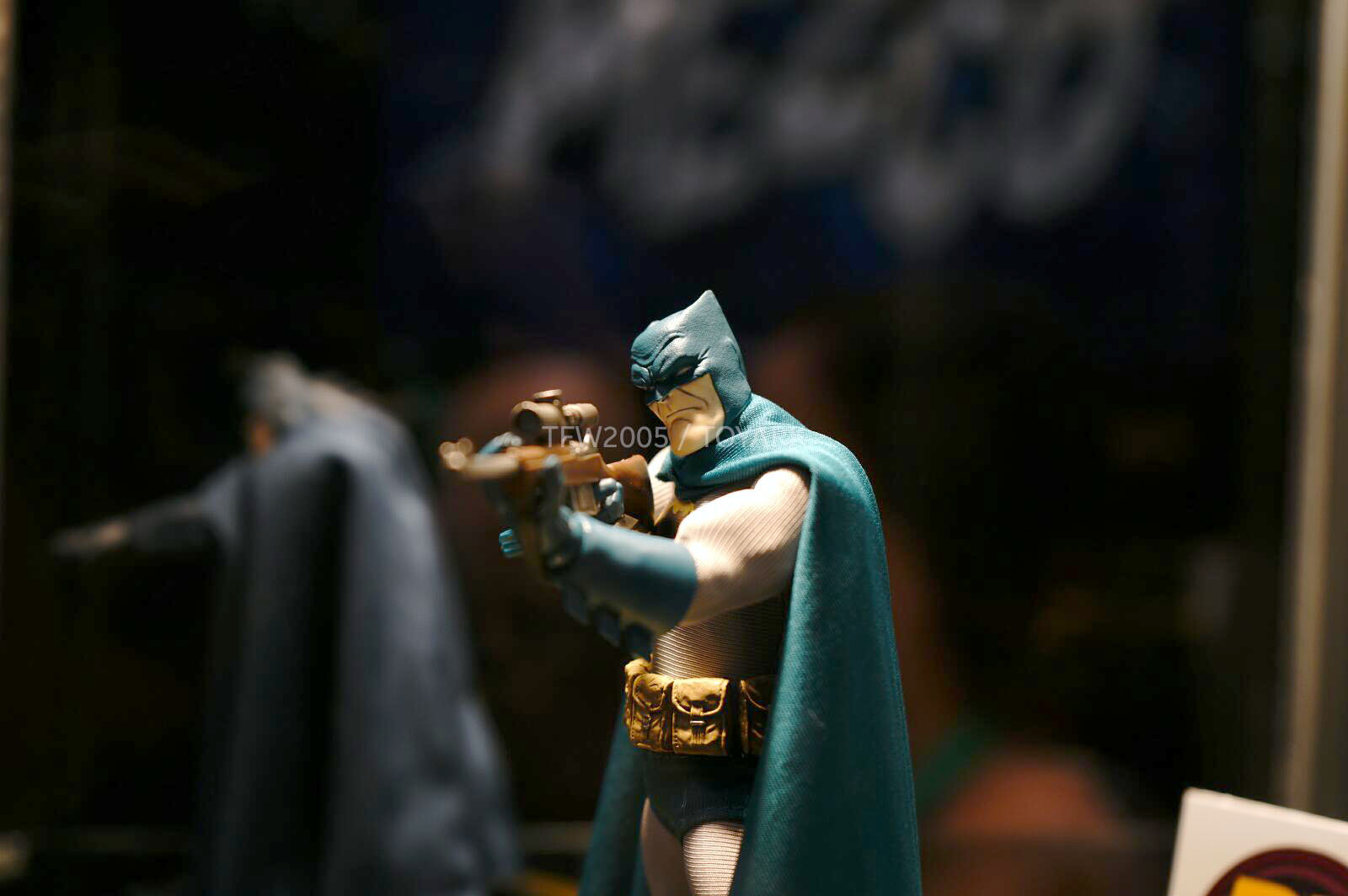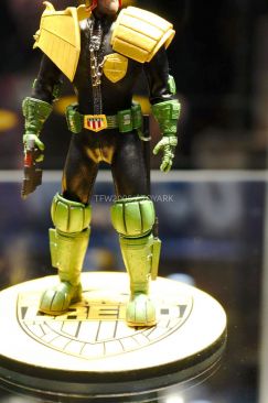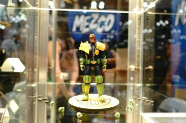 At New York Comic-Con 2014, Mezco revealed the next figure in their 1:12 Collective line. These are 6″ scale figures that feature full articulation, accessories and cloth costumes. They are meant to feel like scaled down 1/6 scale figures. the new figure is none other than a comic version of Judge Dredd. They also had their previously revealed Dark Knight Returns Batman figures.