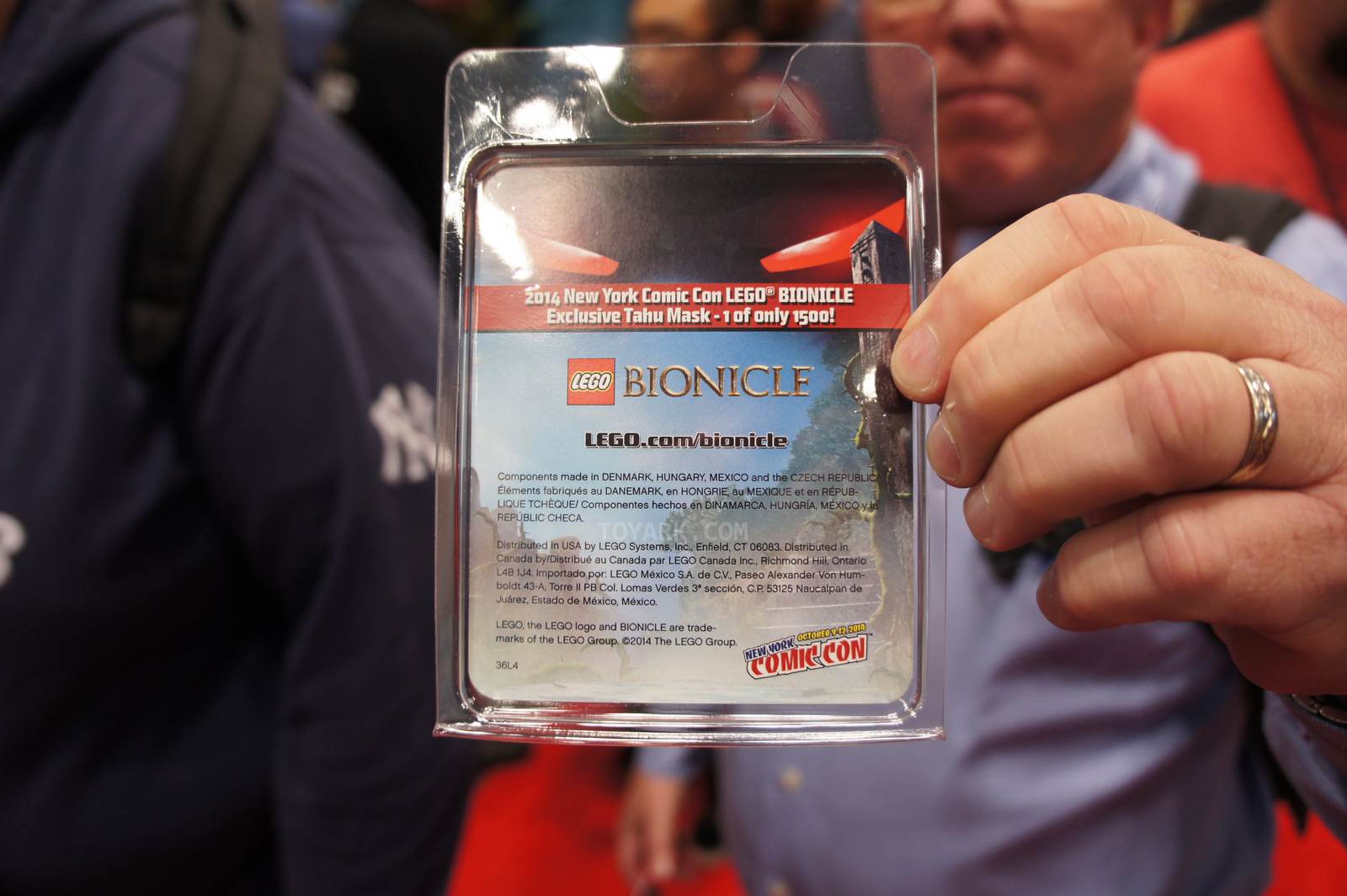 Our crew at New York Comic-Con 2014 have sent over some photos from the LEGO Bionicle display from the show floor. They were offering a NYCC 2014 Exclusive clear Tahu Mask, which was limited to 1,500 pieces. Also on display were some of individual figures and a large sculpture.