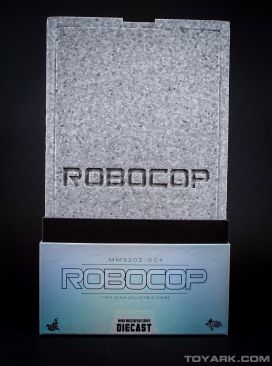This is the first ever Hot Toys figure I have purchased. Robocop is one of my favorite films, and I’ve wanted this since I first saw it. Luck and good timing allowed me to order it just as it was released. The figure comes packaged in a large box, which splits in two near the bottom to reveal the foam insert. Everything is easy to remove and drop back in for storage. The figure stand and remote are hidden in the back of the foam. The figure is ready to go right out of the box.