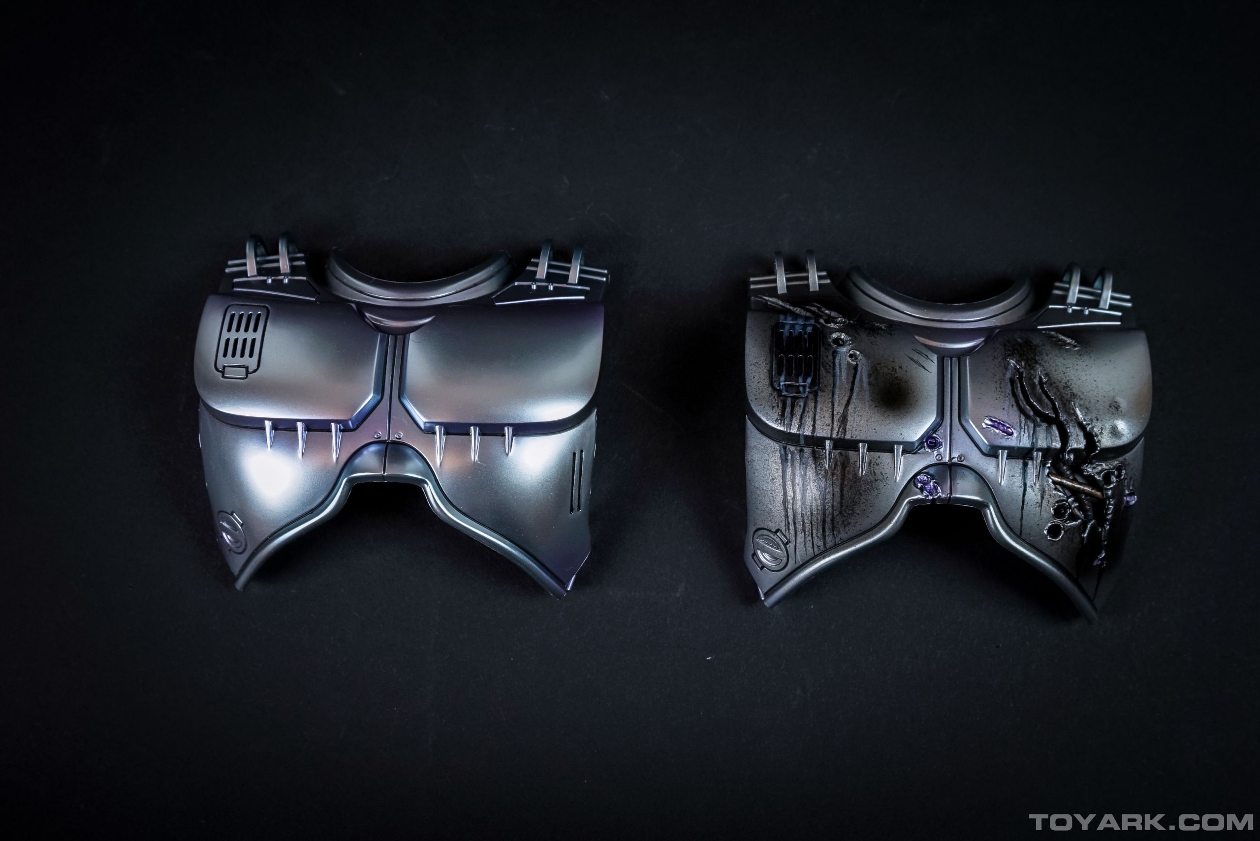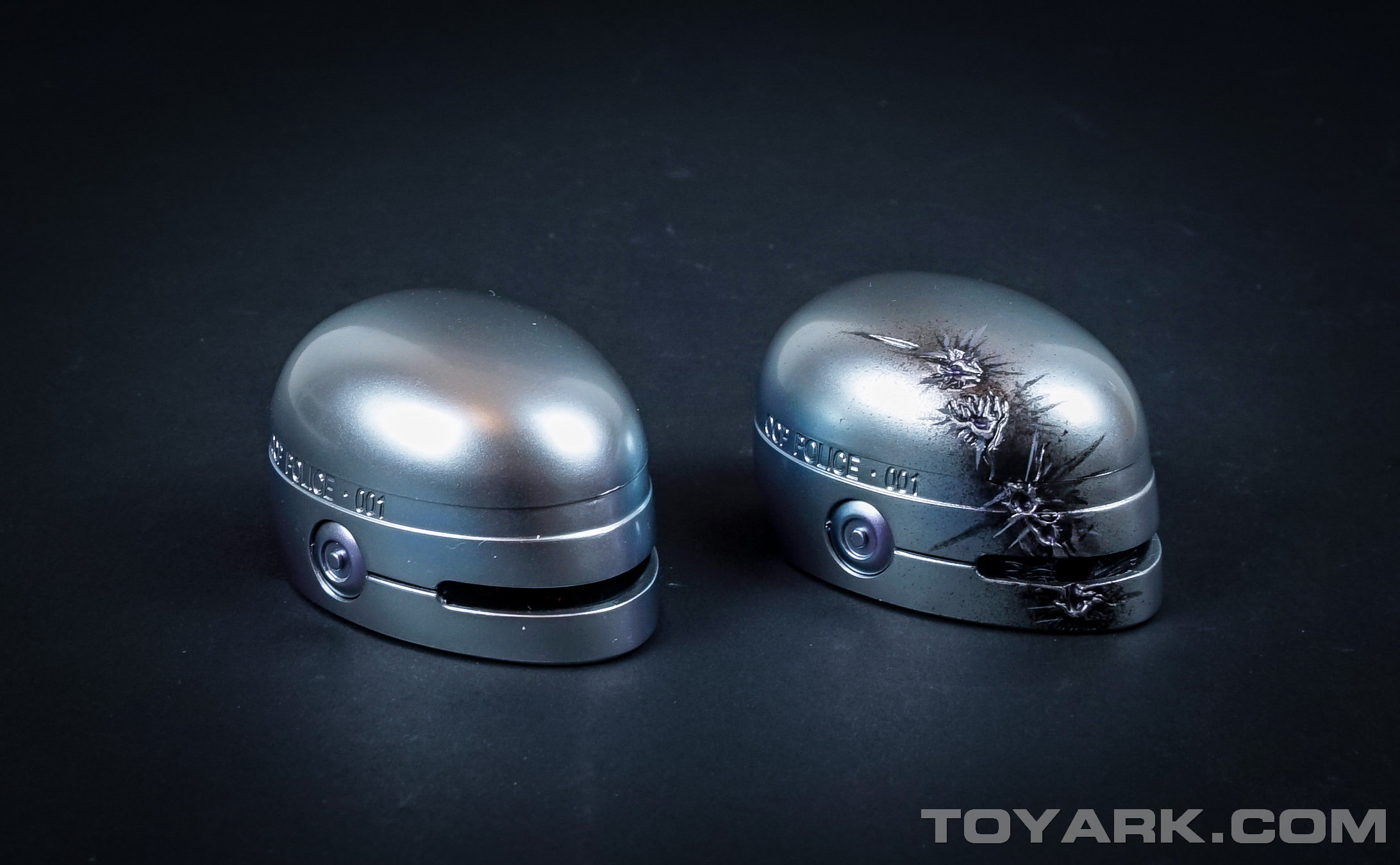 There are two battle damaged pieces included as well. The chest plate feature some great bullet holes, scrapes and exposed wires. The battle damaged face mask, however, is the major highlight. I didn’t realize, until I was processing the images, that one of the eyes is exposed behind the damaged visor. It’s touches like these that truly set this apart from other Robocop figures I’ve ever owned.