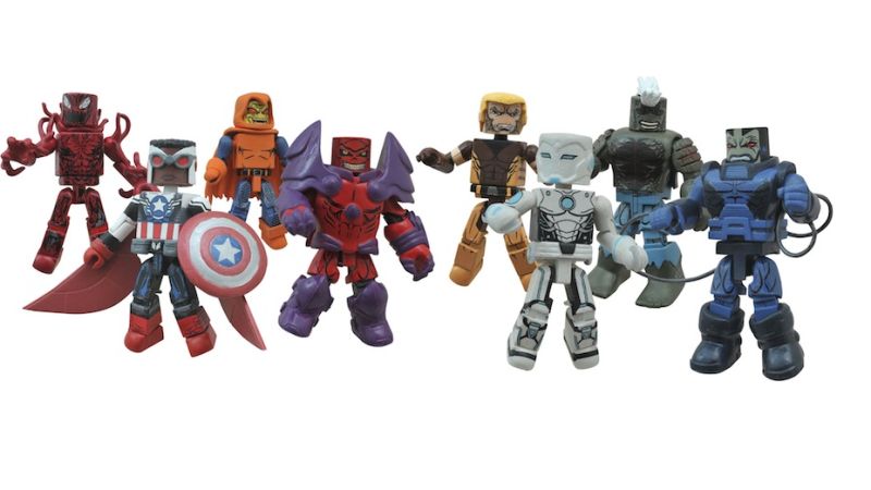 A Diamond Select Toys release! The Inversion is upon us, and some of Marvel’s biggest heroes and villains have changed their looks, as well as their minds! This all-new assortment of comic-based two-packs includes Sam Wilson as Captain America vs. Red Onslaught, Superior Iron Man vs. Apocalypse, Carnage vs. Hobgoblin, and Sabretooth vs. Kluh, the evil Hulk! Each two-inch Minimates mini-figure features 12-14 points of articulation, as well as interchangeable parts and acccessories. Each 2-pack comes packaged in a full-color window box. Designed by Art Asylum! (Item #FEB152165, SRP: $9.99/ea.)