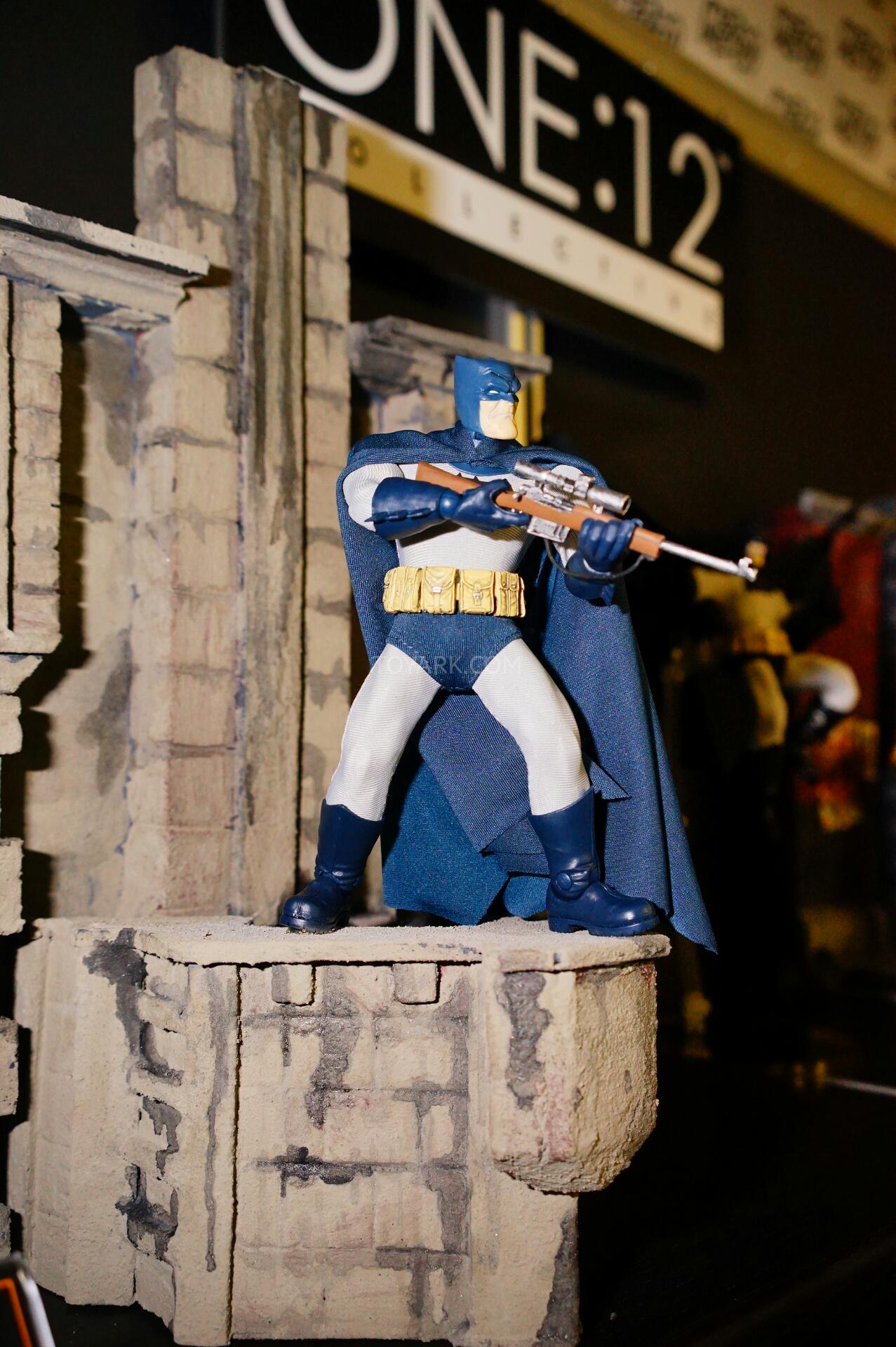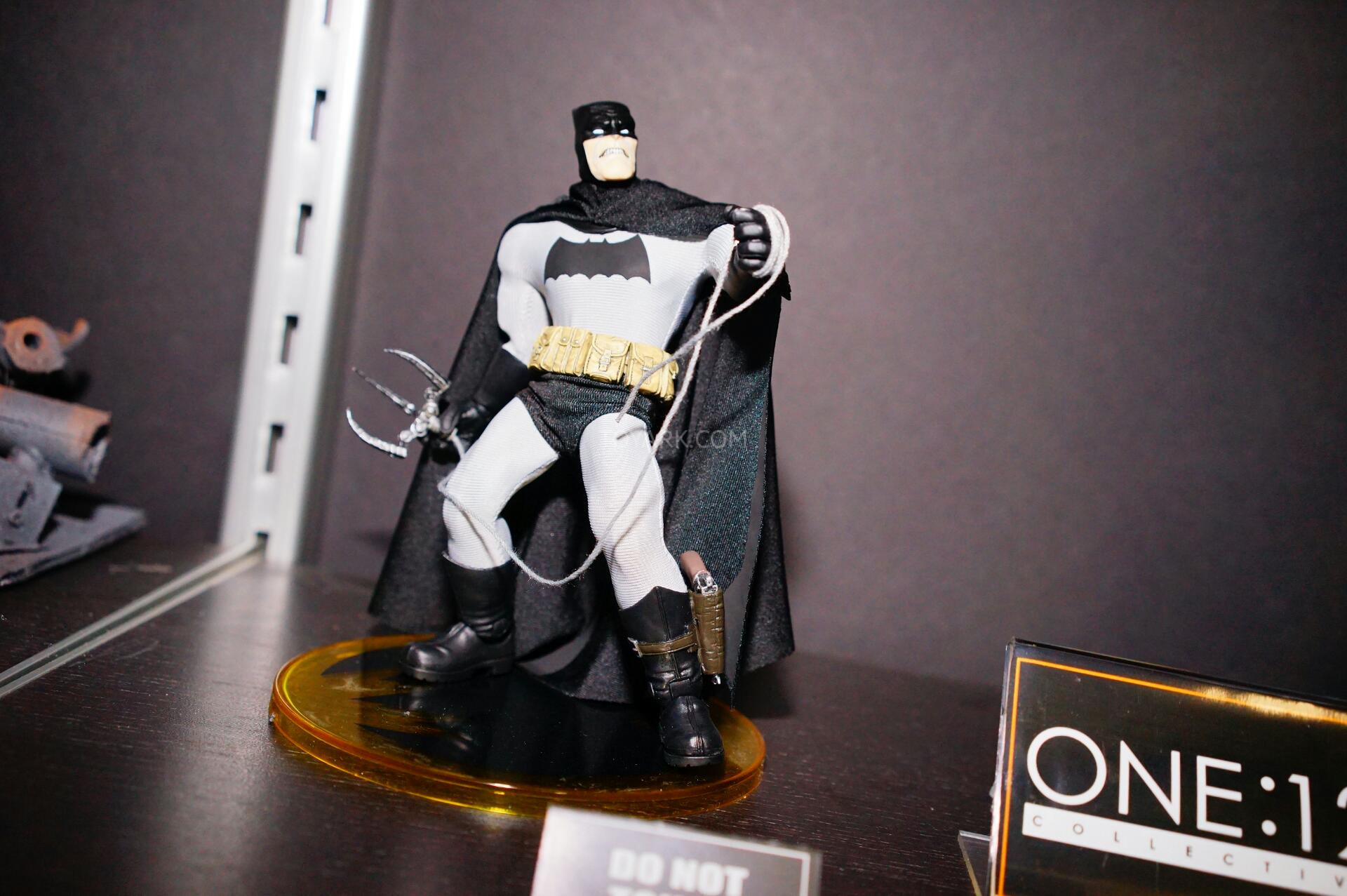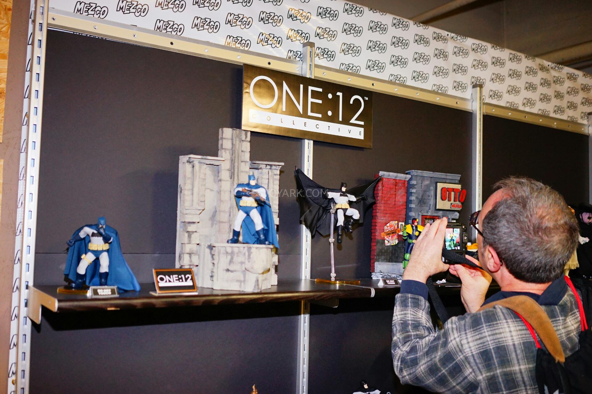 Here are photos of the One:12 Collective display from Mezco’s Pre-Toy Fair Event. We get new looks at their One:12 Collective Dark Knight Returns Batman and Judge Dredd Figures. They also debuted a Dark Knight Returns Mutant Leader as well as a Lawmaster Motorcycle for their Judge Dredd. We also get our first look at the packaging style for the One:12 Collective line up! Here’s what we saw on display: