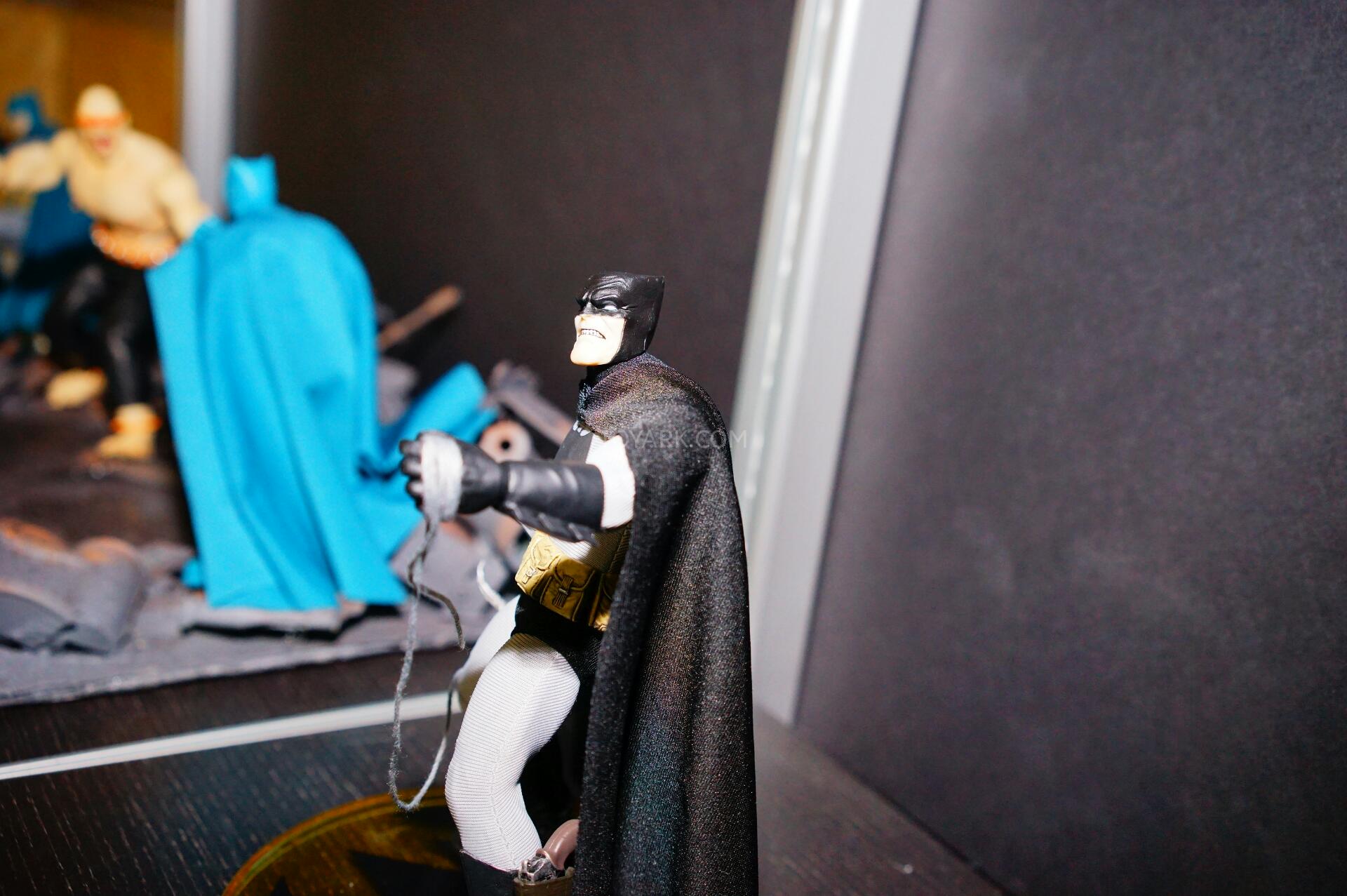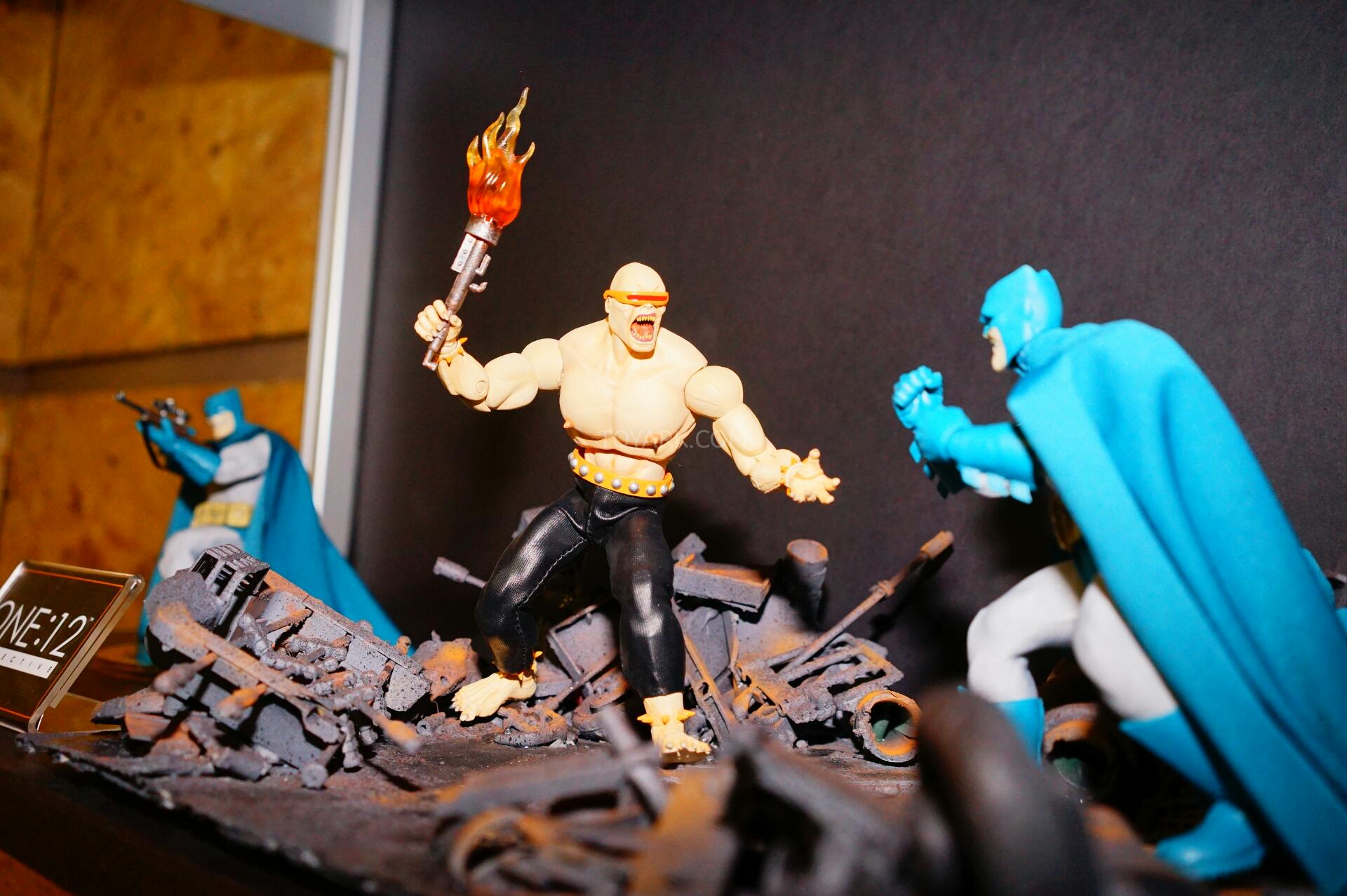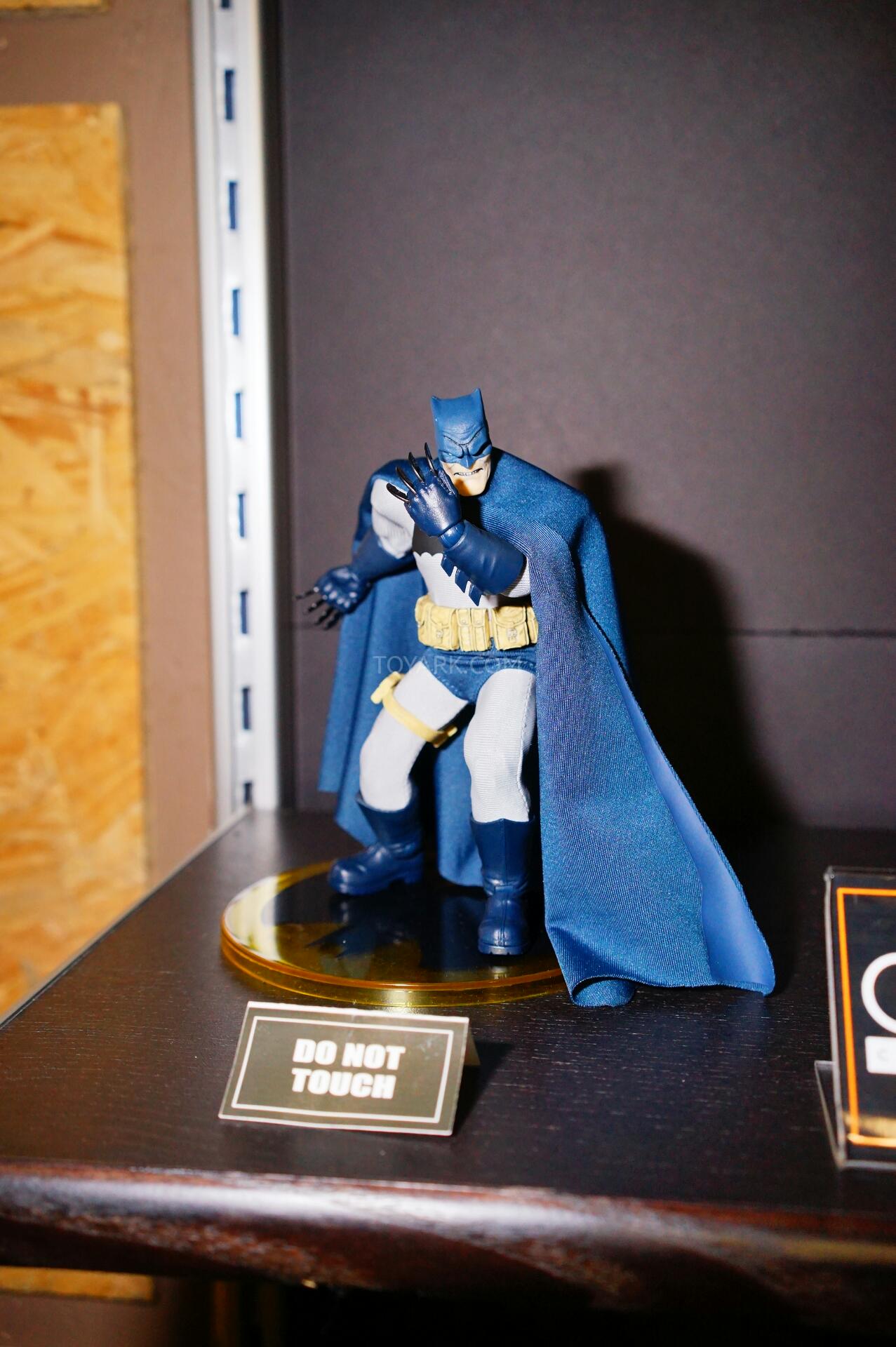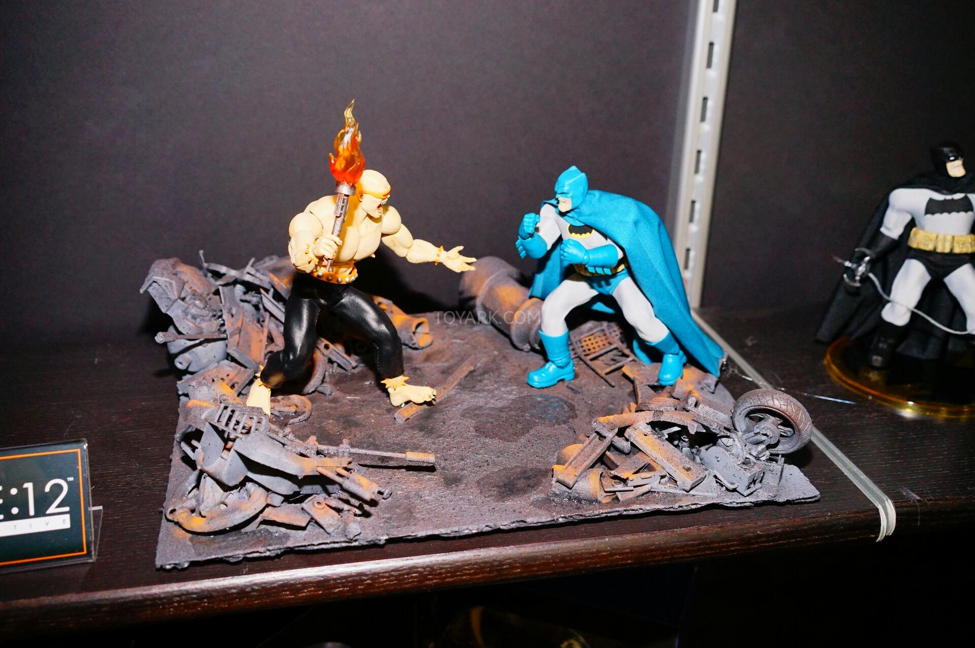 Here are photos of the One:12 Collective display from Mezco’s Pre-Toy Fair Event. We get new looks at their One:12 Collective Dark Knight Returns Batman and Judge Dredd Figures. They also debuted a Dark Knight Returns Mutant Leader as well as a Lawmaster Motorcycle for their Judge Dredd. We also get our first look at the packaging style for the One:12 Collective line up! Here’s what we saw on display: