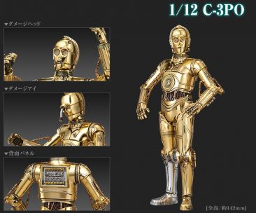 Check out the latest figure from Bandai‘s upcoming Star Wars 1/12 Scale Plastic Model Figure line. Their newest reveal is for a C-3PO figure. These 1/12 scale figures are being released as “plastic models”, but are fully articulated figures. C-3PO joins Darth Vader, R2-D2, R5-D4 and a Stormtrooper in the line up so far. The figure stands at 142MM tall (roughly 5.6″).