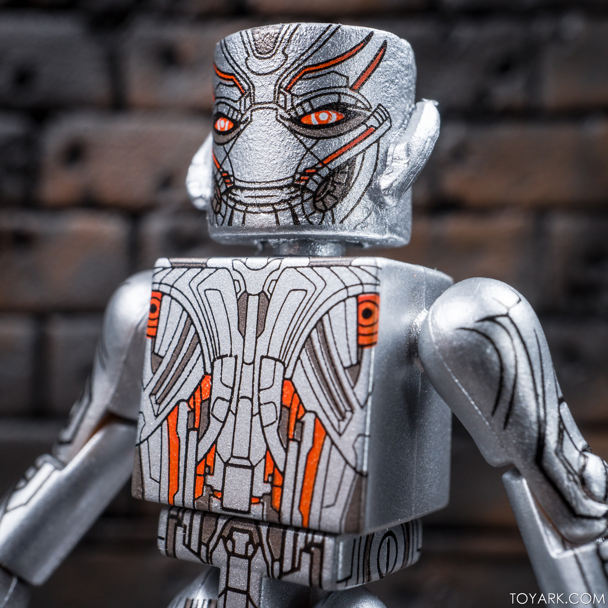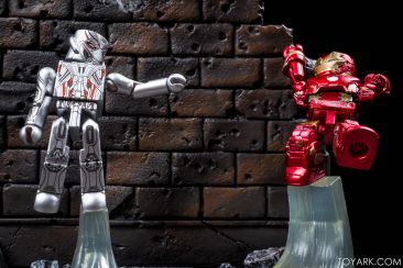 Overall this is a solid but expected line up for Age of Ultron. All the figures are core characters in the movie and feature their movie decos. I particularly liked the Iron Man, the paint really pops. Caps shield is also well done, featuring a metallic sheen while being stored on the back or arm via pegs. The Ultron figures also have a slight metallic pop to them, really making this the wave of bling. Overall it’s an awesome line up which looks great on the shelf alone or as companions to a larger Avengers theme. We should be getting a ton more AoU Minimates over the coming months – they already have Hulkbuster, Hulk, Vision, War Machine, Bruce Banner, several unannounced “mystery” figures, and a blind bag wave with multiple Sub-Ultron variants planned. Stay tuned!