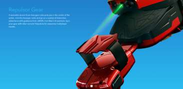 The toys communicate with each other through a combination of gesture recognition, infrared and radio frequency technology. This allows the toys to bring the story to life around you as each toy senses your movements and actions. The wearable tech (Avenger Gear) communicates to the AvengersNet app through wireless technology to record your accomplishments, give you rewards and unlock new experiences.