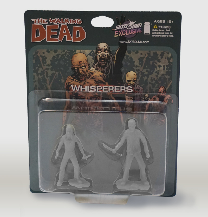 The Walking Dead PVC Miniatures 2-packs – Ezekiel and Shiva, Whispers 2 pack ($10 each)-Next in the series of The Walking Dead PVC Miniatures comes a pack of gruesome Whisperers and a 2-pack of Ezekiel and his tiger, Shiva! Designed by October Toys, these PVC miniatures come in 3 different colors. Limited to 200 each