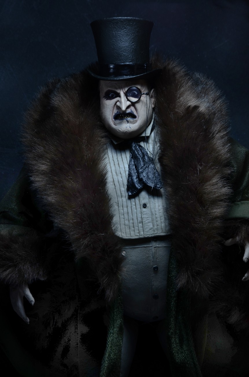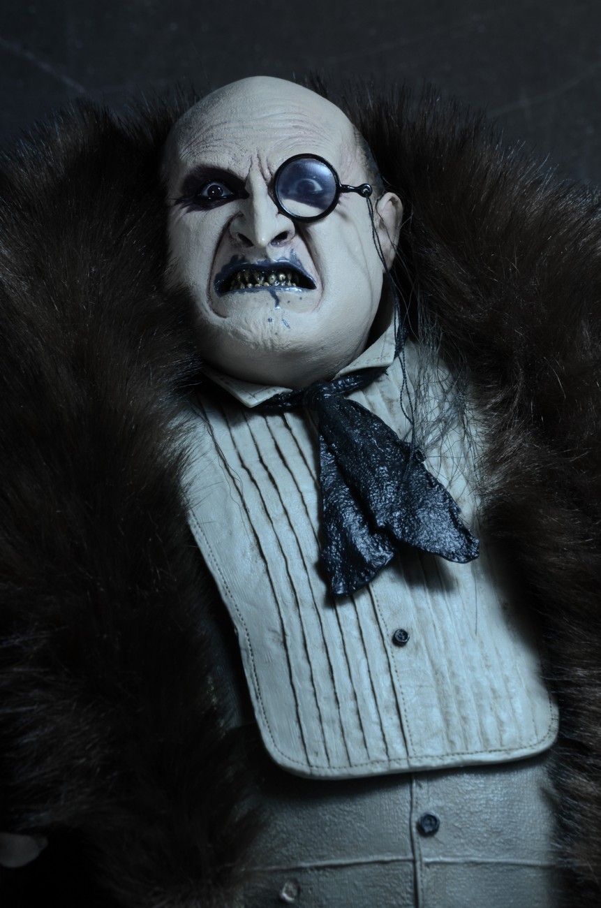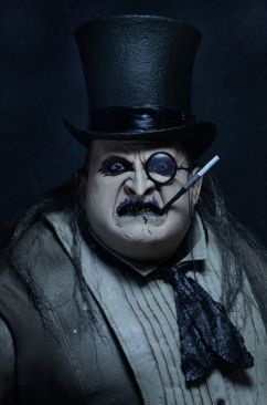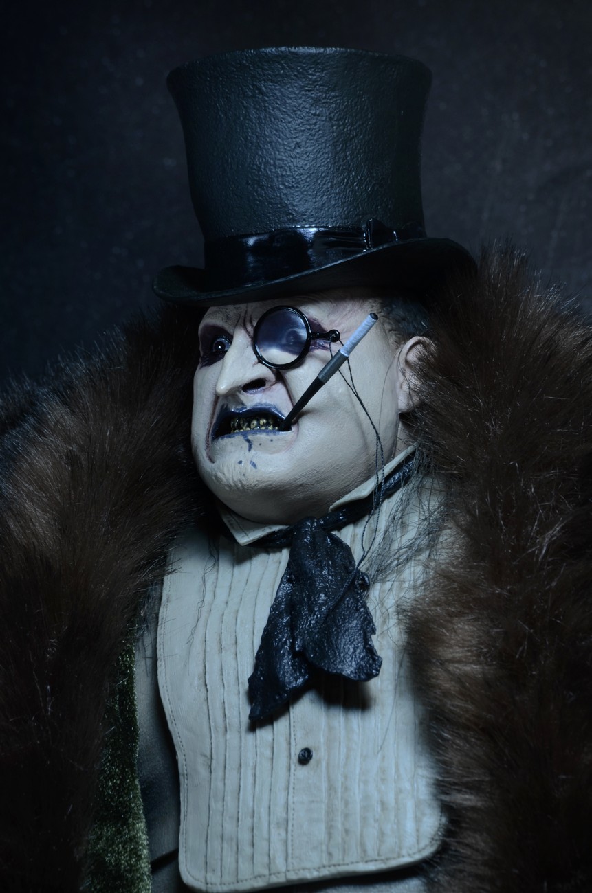 A bunch of new photos and info has been released for the upcoming Batman Returns – 1/4 Scale Penguin Figure. NECA has shared news that, due to some manufacturing issues, the figure will not include an umbrella. However, they have added five new accessories to replace the missing one. Penguin will now include a monocle, an extra hand, a half eaten fish, a cigarette in holder and a “Cobblepot for Mayor” sign.