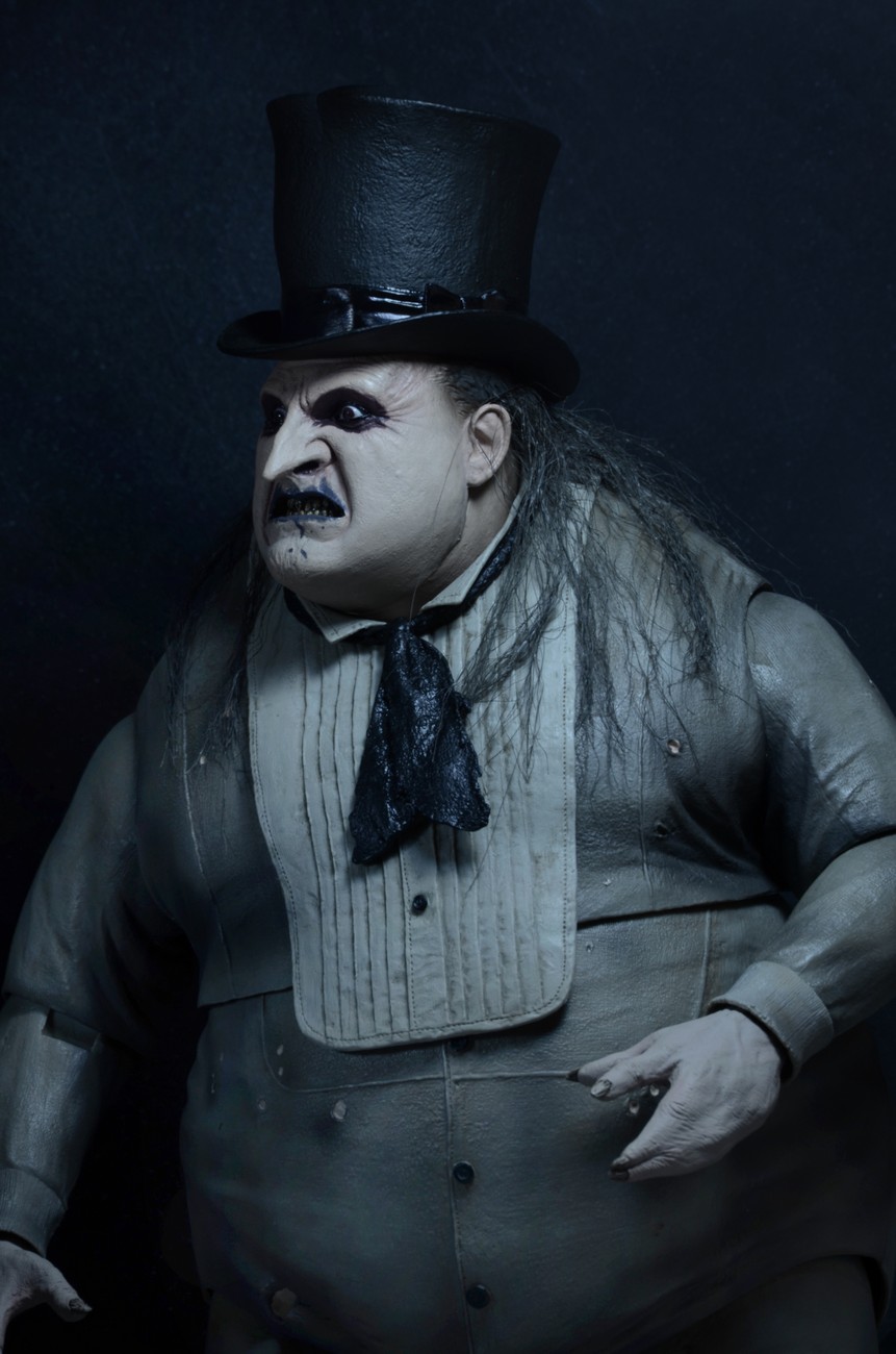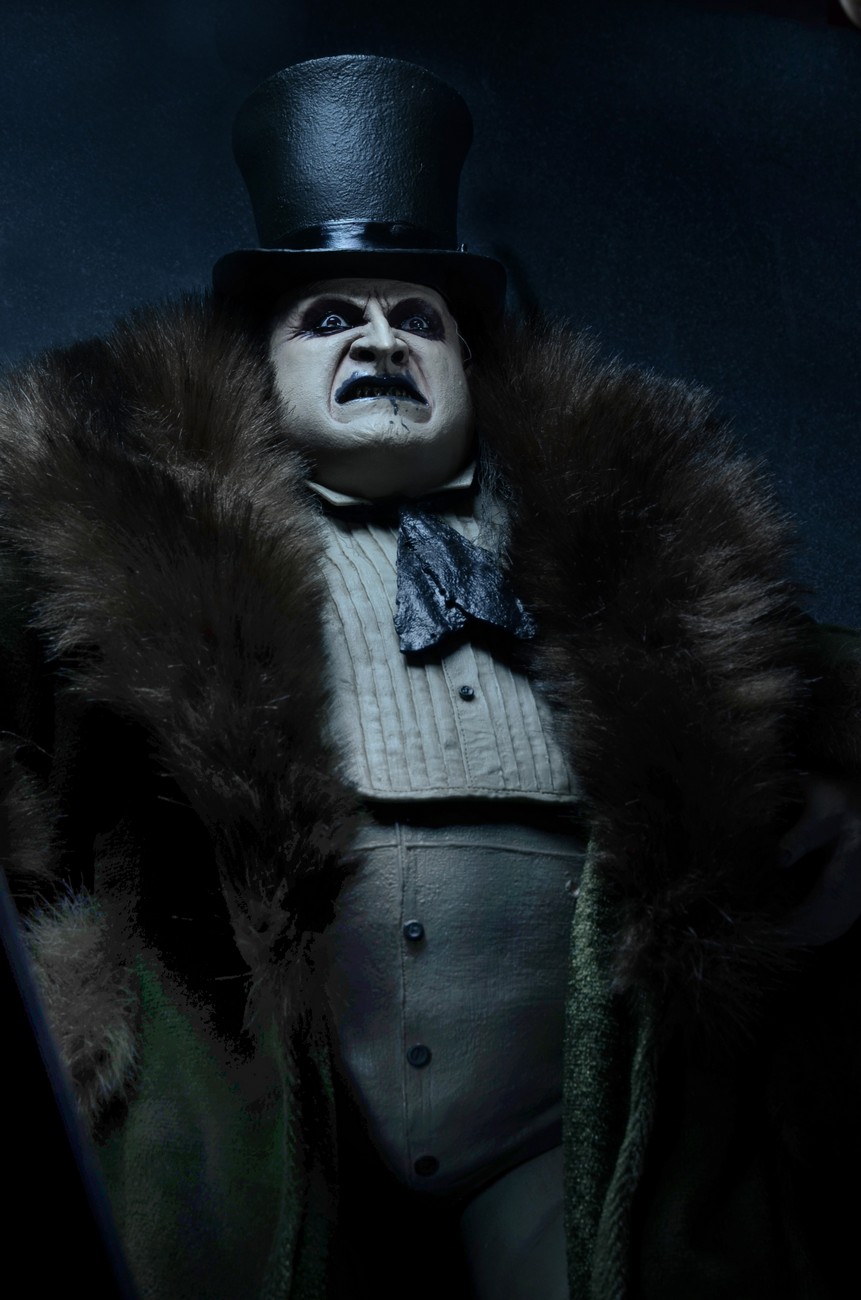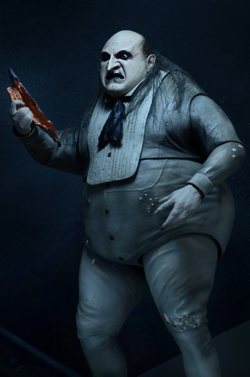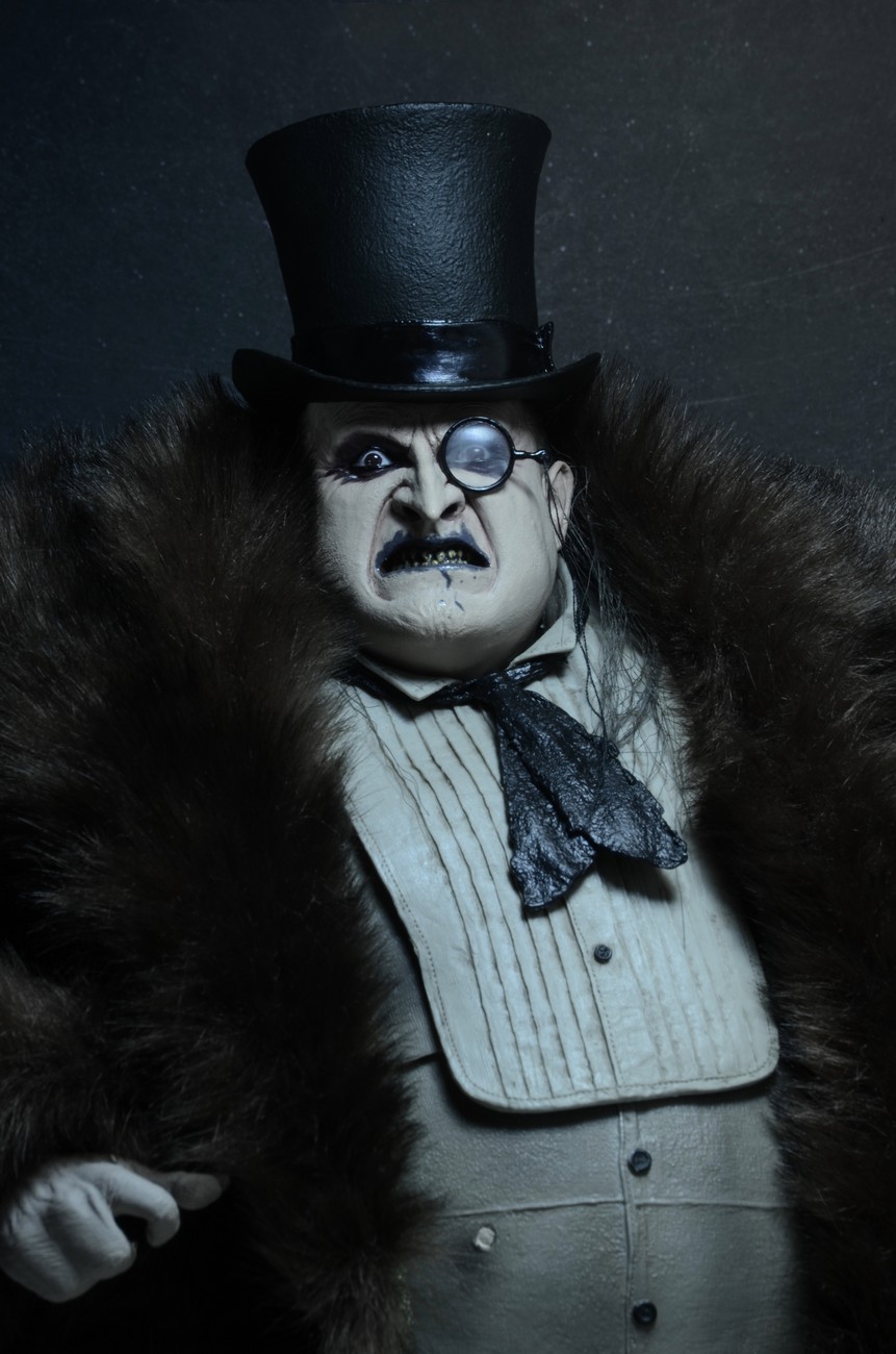 A bunch of new photos and info has been released for the upcoming Batman Returns – 1/4 Scale Penguin Figure. NECA has shared news that, due to some manufacturing issues, the figure will not include an umbrella. However, they have added five new accessories to replace the missing one. Penguin will now include a monocle, an extra hand, a half eaten fish, a cigarette in holder and a “Cobblepot for Mayor” sign.