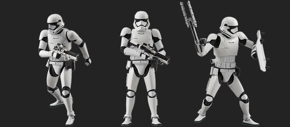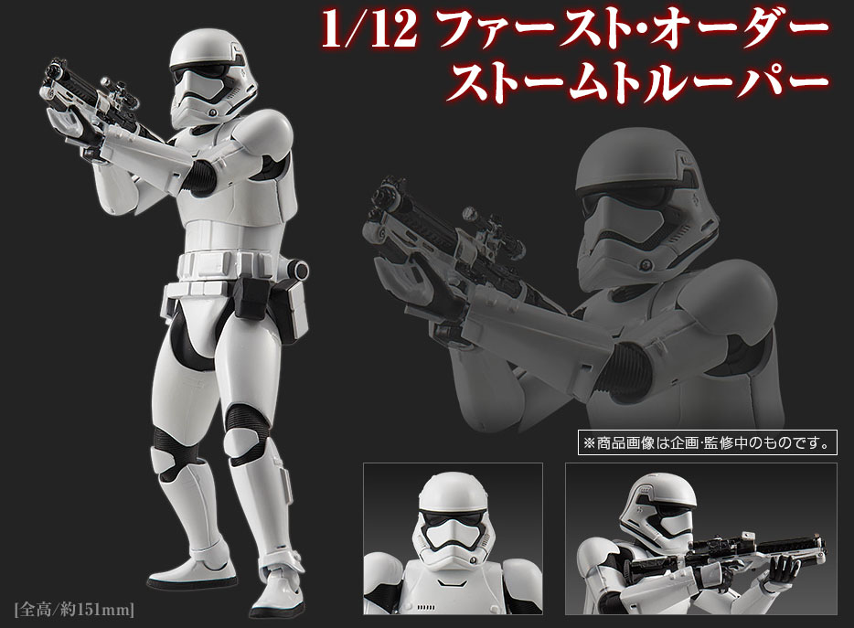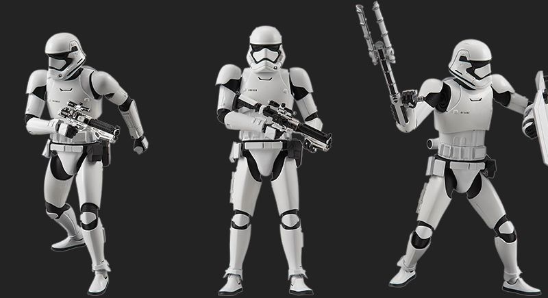 Bandai has just released photos and info for their first Star Wars: The Force Awakens Model Kits. There will be a 1/12 Scale First Order Stormtrooper as well as a 1/72 Scale X-Wing and a 1/144 Scale Millennium Falcon.
