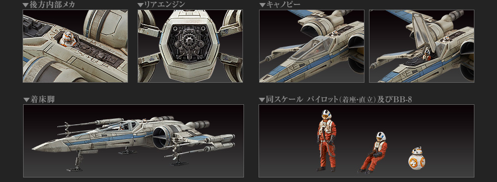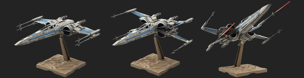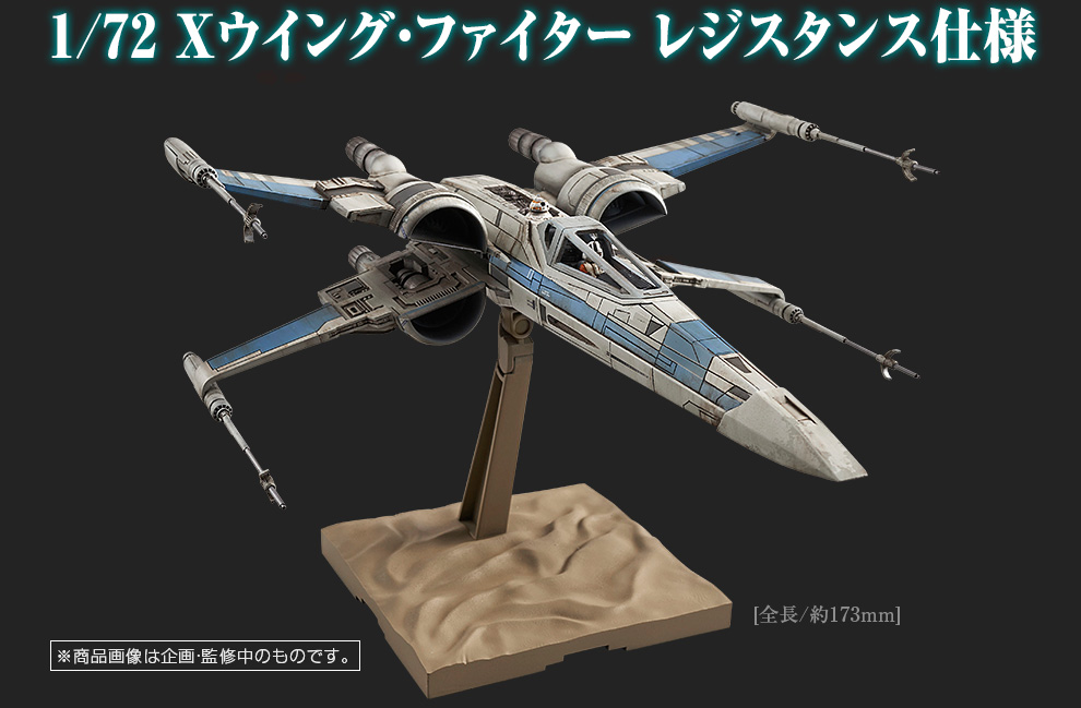 The 1/72 Scale Resistence X-Wing Fighter comes unassembled, but pre-painted. It will also include decals. The vehicle will include weapon effects, canopy pieces, a display stand, as well as standing and seated pilots as well as BB-8. This will be available in October at a price of 2,592 Yen (about $21 USD).