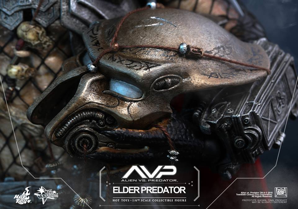 Back in July, at AGCHK 2015, we saw that Hot Toys was prepping an Elder Predator Version 2. We’ve had no real update since that unveiling. Hot Toys has now released official photos and info for the upcoming Alien vs Predator 1/6 Scale Elder Predator Version 2 Figure. The figure is scheduled for release between the second and third quarters of 2016. It will include multiple interchangeable hands, a removable mask, a sword and sheath, a Combi-Stick and more.