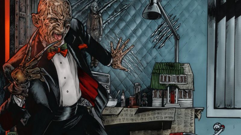 The Toyark › Horror Toy News › Mego Nightmare On Elm St 3: The Dream Warriors Tuxedo Freddy Card Art