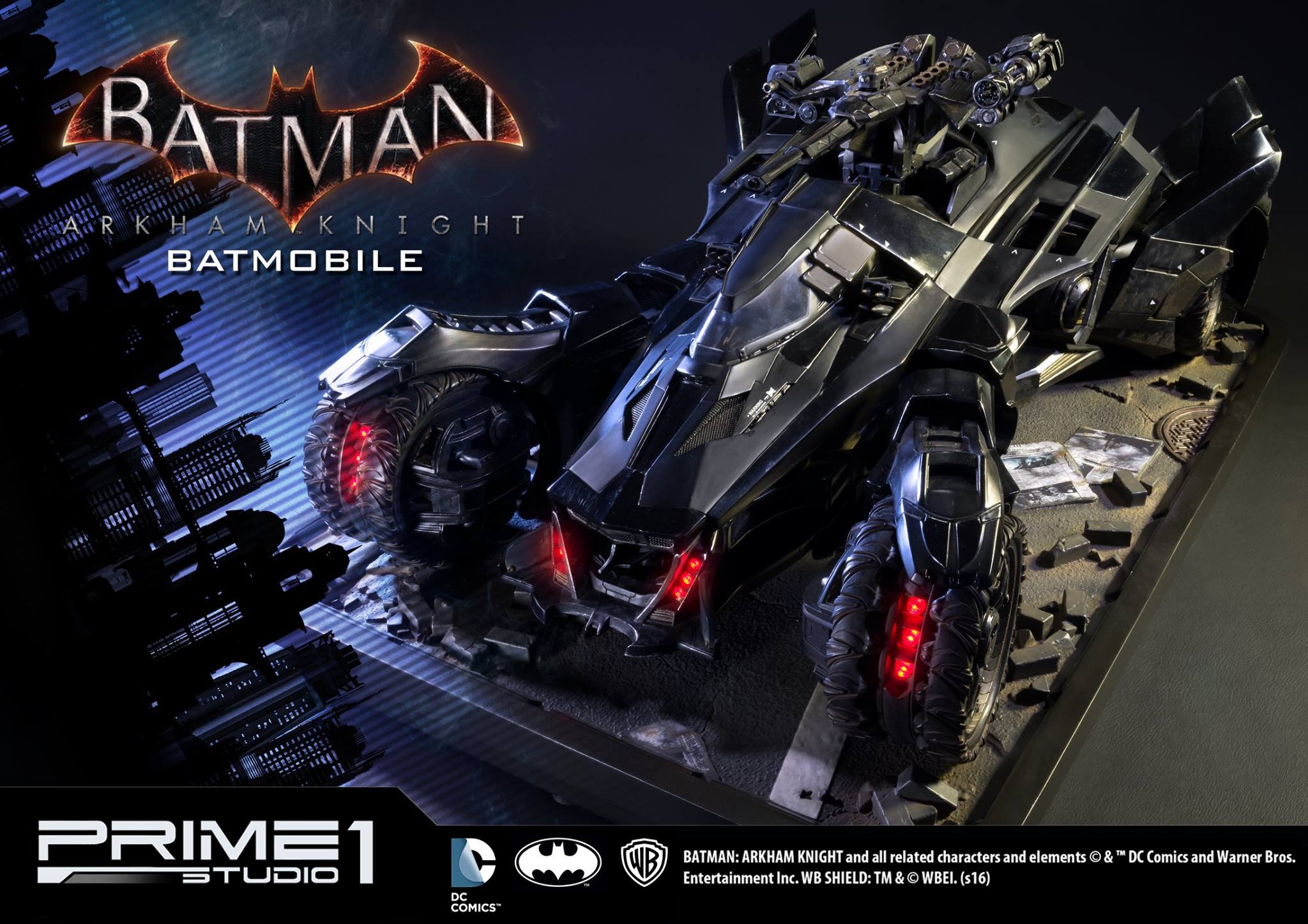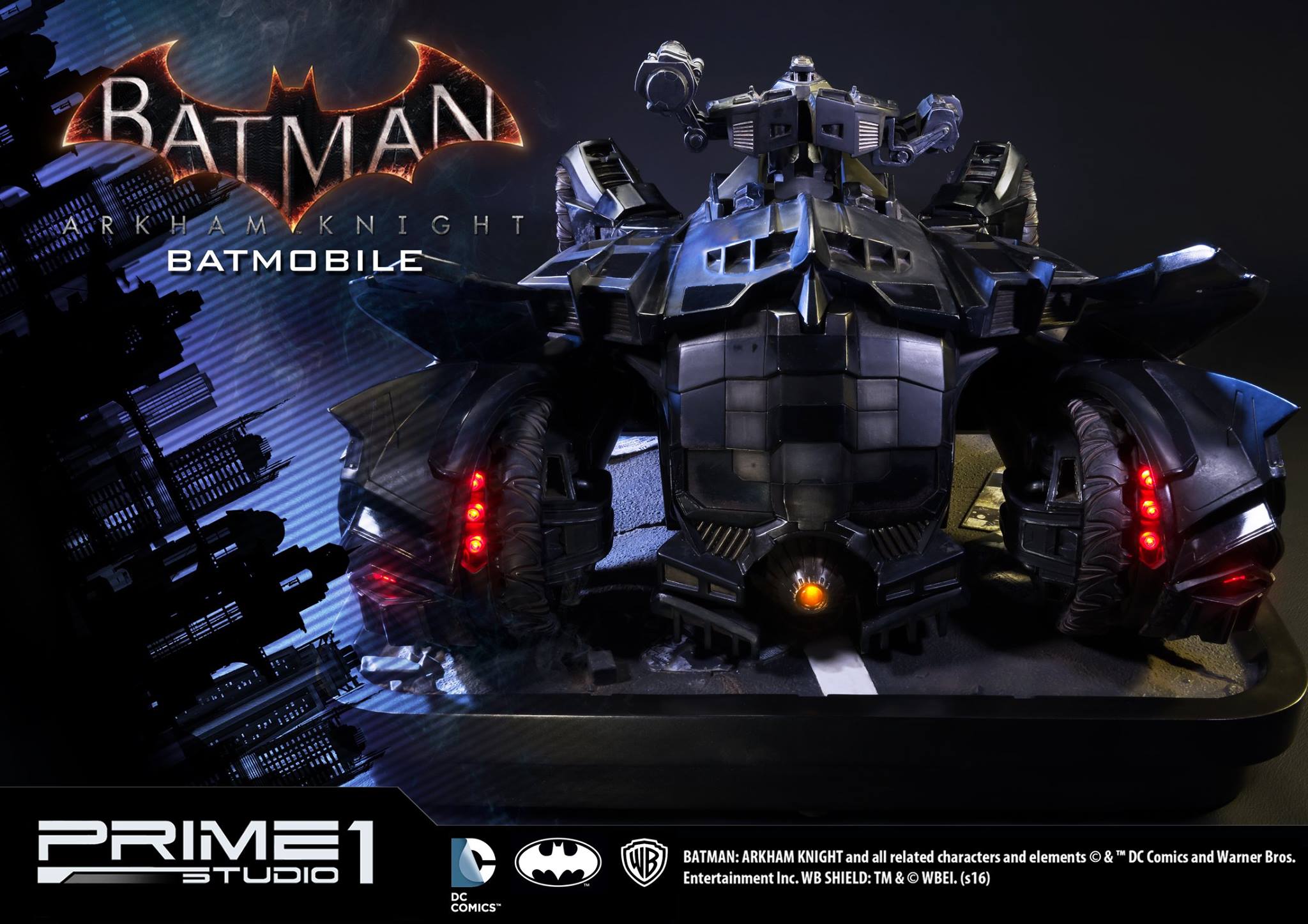 Prime 1 Studio are proud to present the Batmobile from Batman: Arkham Knight. Designed by Batman, the Batmobile is a highly detailed vehicle that exceeds capabilities of any other on the road. Armored and outfitted with enhanced recon capabilities and weapons, this tank-like custom car is Batman’s main mode of transportation around Gotham City. This 1:10 scale polystone diorama features an remote control LED light-up function.
