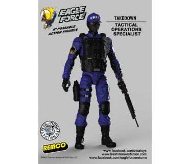 Each Eagle Force figure stands 4” tall (1:18 scale) and has 14 points of articulation. They are intended to blend in perfectly with other figures in the same scale that share similar themes and designs.