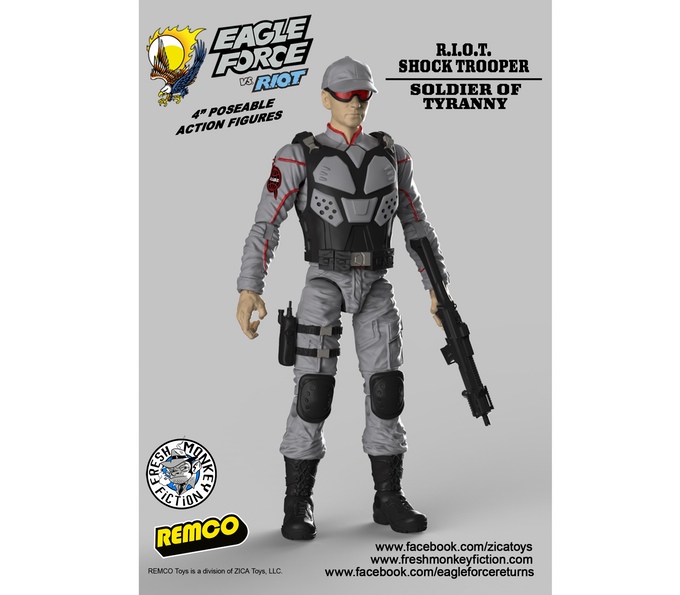 Fresh Monkey Fiction and Remco Toys are teaming up to bring back Eagle Force. The long retired Captain Eagle is recruited back into active duty by his old teammate General Brown. Together they’re recruiting the next generation of Eagle Force team members to combat the re-emerging forces of R.I.O.T., a terrorist organization driven by revenge and desire for global domination.