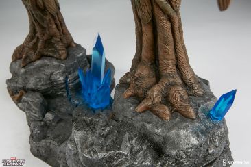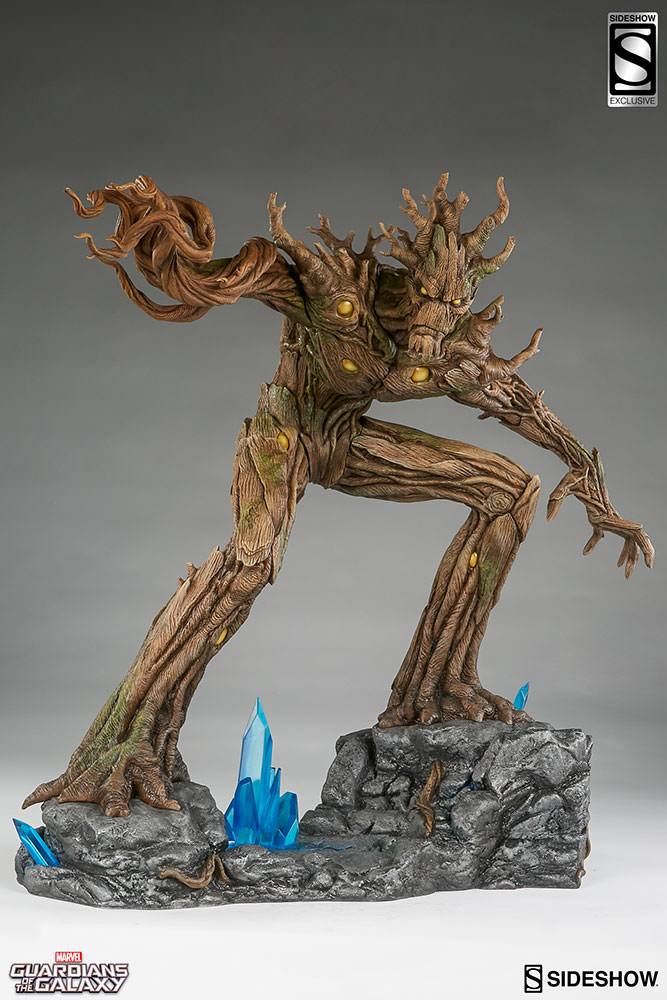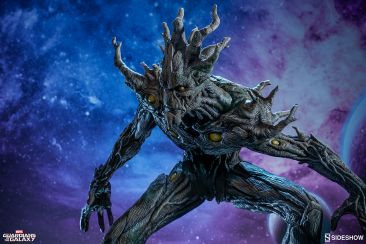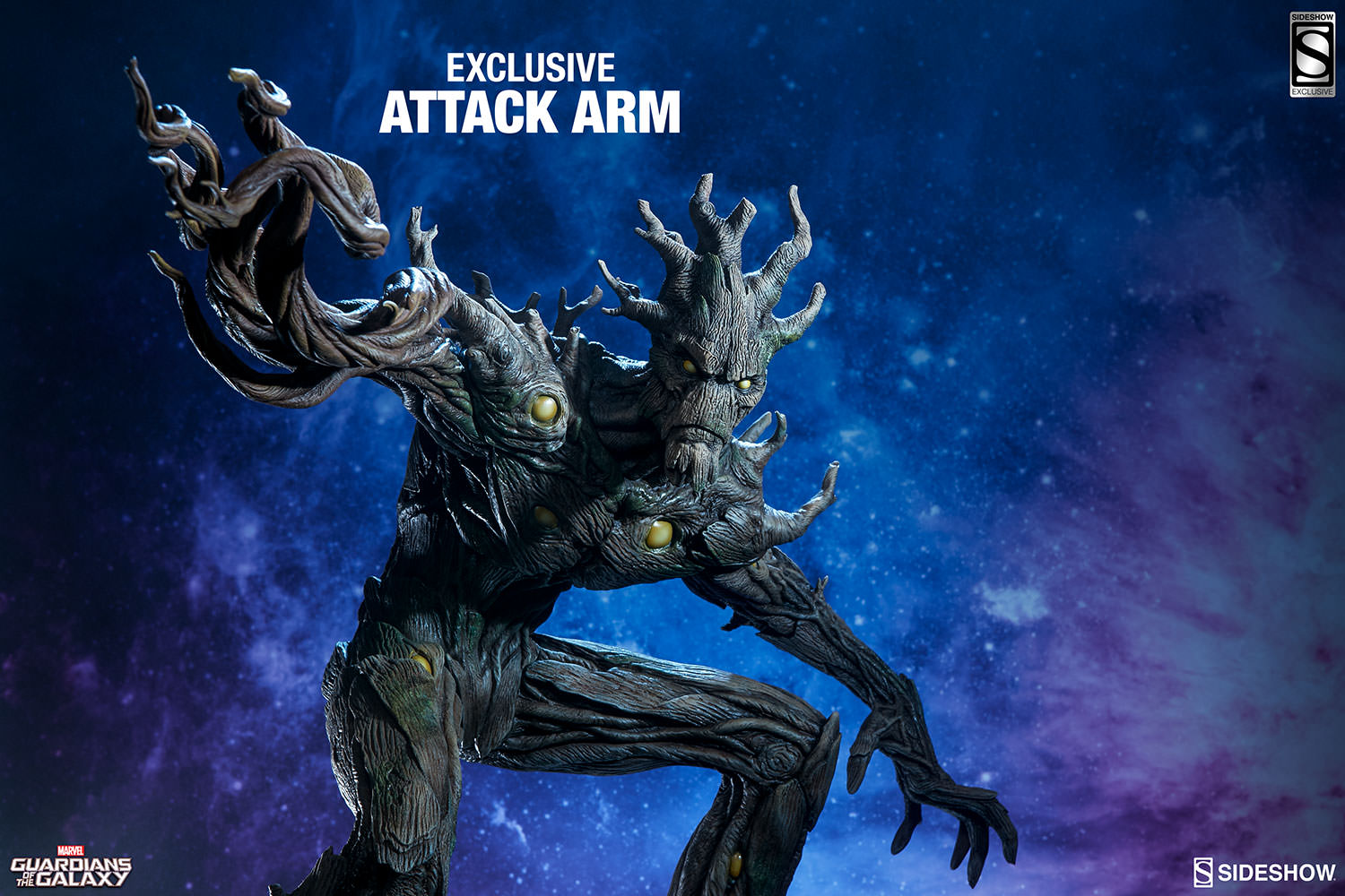 The Sideshow Exclusive variation features an outstretched and attacking arm with tendrils reaching out to grasp an opponent foolish enough to test his mettle against the massive trunk and intellect of Groot.