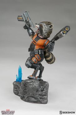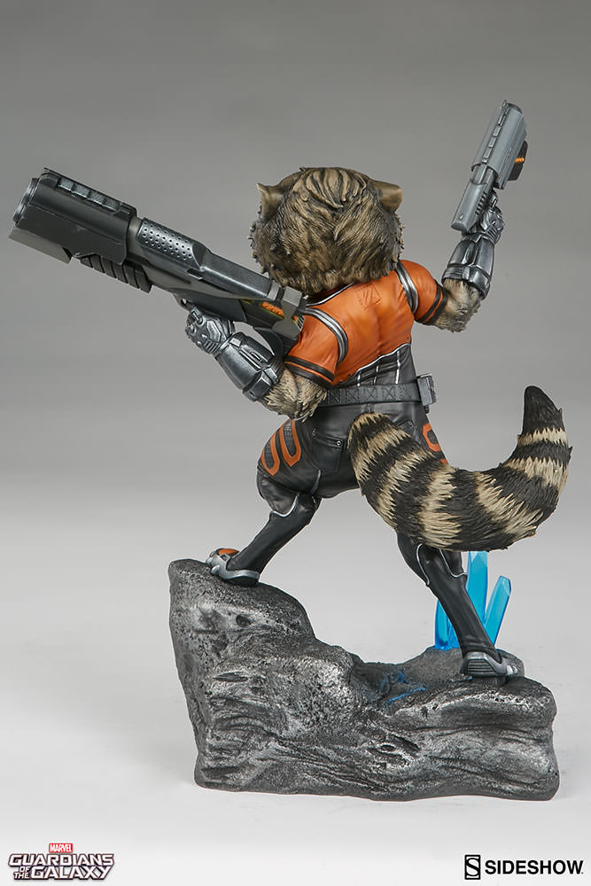 Normally we say something like, Standing at an impressive such and such inches tall. However, Rocket is a raccoon. The piece stands an understandable 10 inches tall and is the perfect companion to the Groot Premium Format Figure. Hes the only one that understands the big guy, anyway. No really.