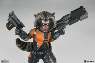 There isn’t much that were going to say that could make a heavy weapon wielding, smart mouthed, master tactician who just so happens to be a genetically modified and altered raccoon any cooler than he is already is. So, without further ado, Sideshow presents our Rocket Raccoon Premium Format Figure.