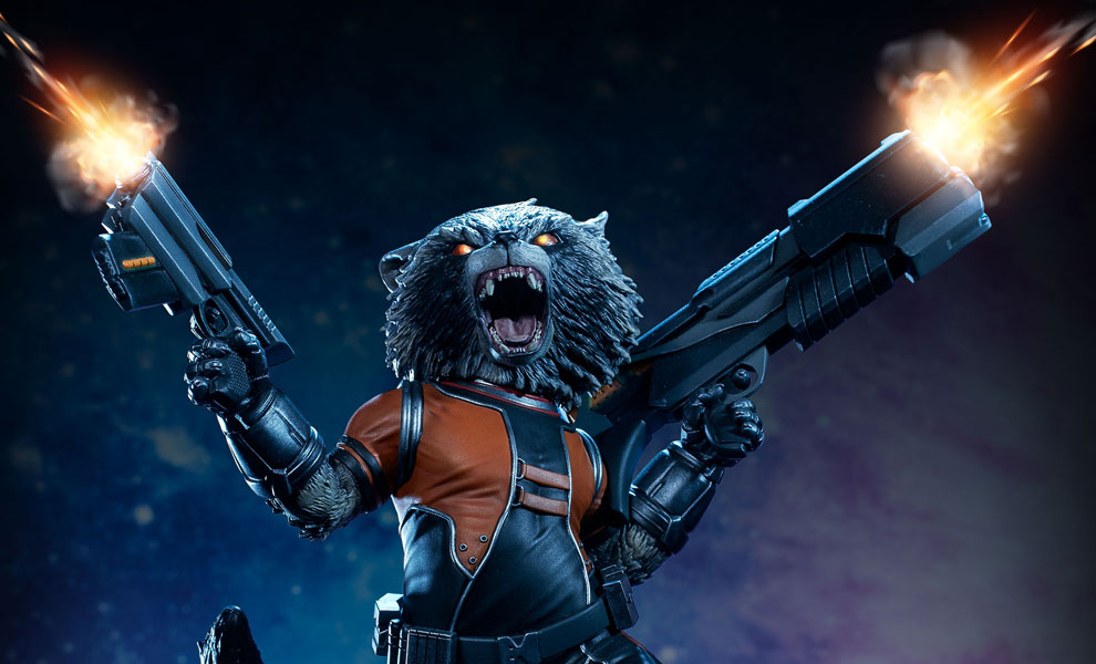 Perfectly capturing his leering charge and overly accessorized weaponry, the Rocket Raccoon Premium Format Figure should not only become a part of your Guardians of the Galaxy collection but he could lead them.